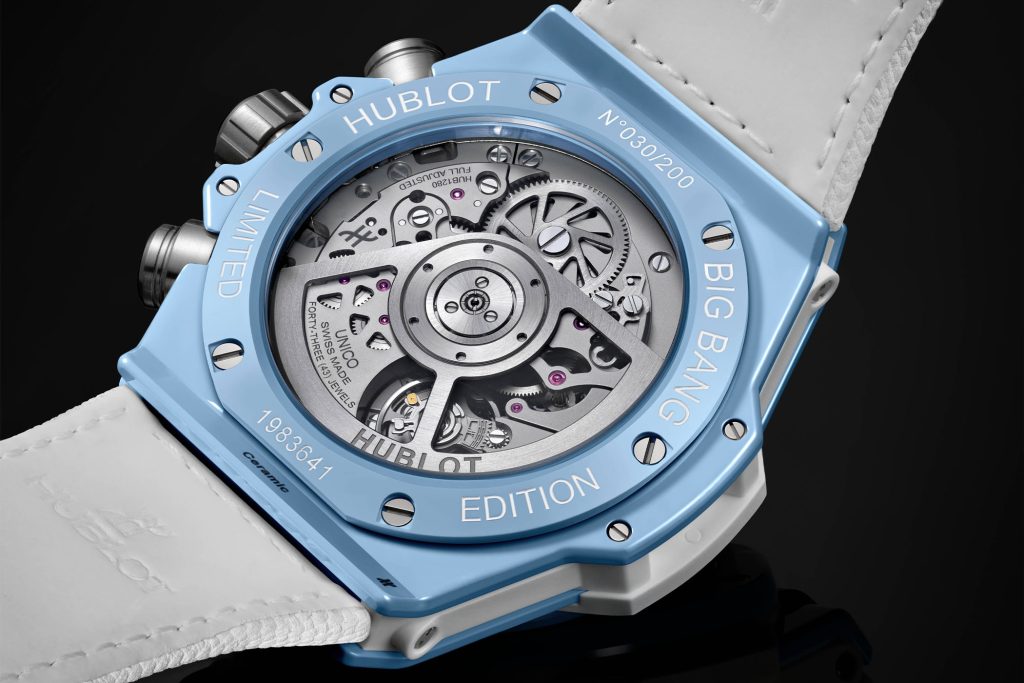 Apart from the case and the strap, the watch is quite similar other Big Bang Unico models. The movement inside is the self-winding calibre HUB1280 UNICO, which features a 4Hz beat rate and 72-hour power reserve, it’s made of 354 pieces. The chronograph is of the column wheel variety, which means it has more precise start and stop actions when in use, and the flyback feature allows the chronograph to be reset without stopping it first. There’s also a date window nestled into the chronograph minutes indicator.