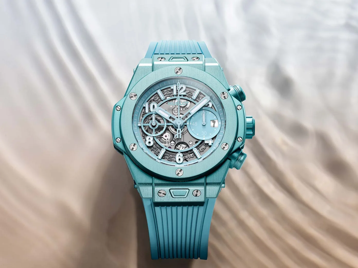 Rather unfortunately, we’ve already done our Top 5 Summer Watches P2 article, so it’s too late for Hublot’s summertime sunshine Big Bang Unico Summer to be included in that list. Nevertheless, Hublot has released a new light blue limited edition piece to mark the coming of warm days and barbecues, so it’s only fair that we take a look.