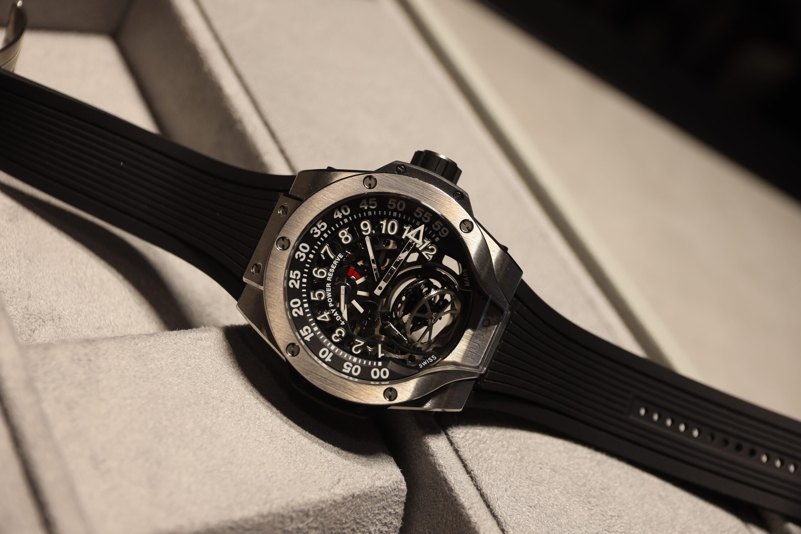 At Hublot’s stand this year during Watches & Wonders Geneva, the staff said Hublot had around 30 novelties to present this year, most of which are different colourways of existing watches. While the young lad within me was extremely excited at the thought of getting his hands on 30+ watches in one sitting, the adult with the camera was thinking about how he was going to get all those photos. That didn’t happen, but there are plenty of watches that I can talk about.