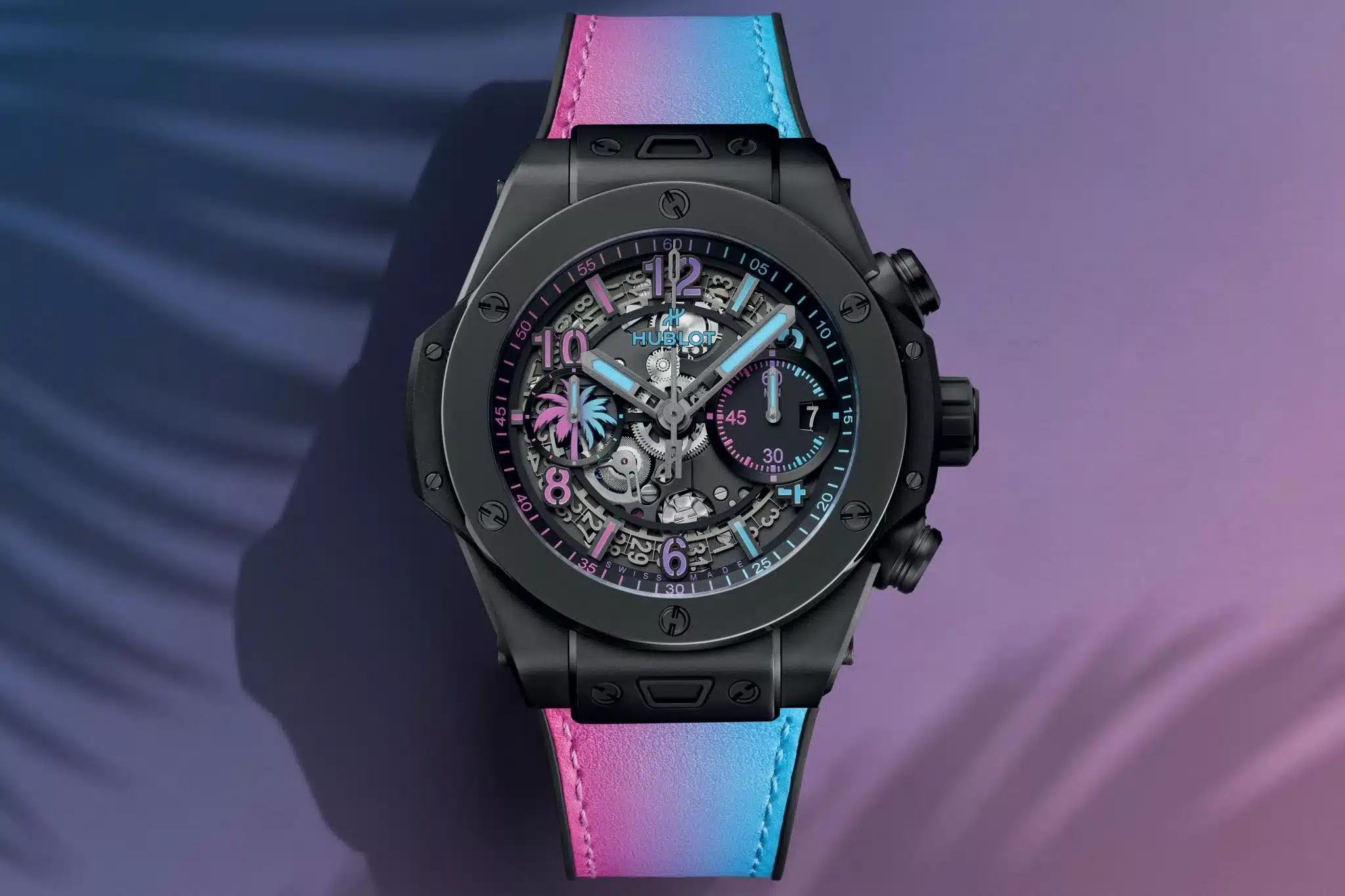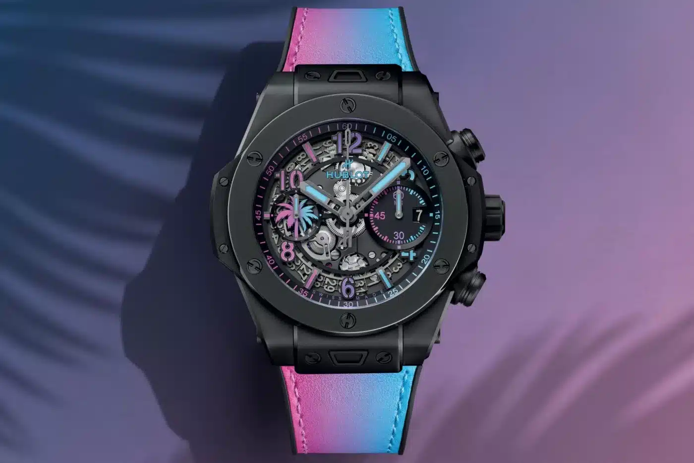 Hublot is a brand that’s never to shy away from bold designs. This time, they take us on a vibrant journey to Miami with the limited-edition Big Bang Unico Magic City. This watch captures the city’s electrifying spirit in a symphony of color and intricate mechanics.