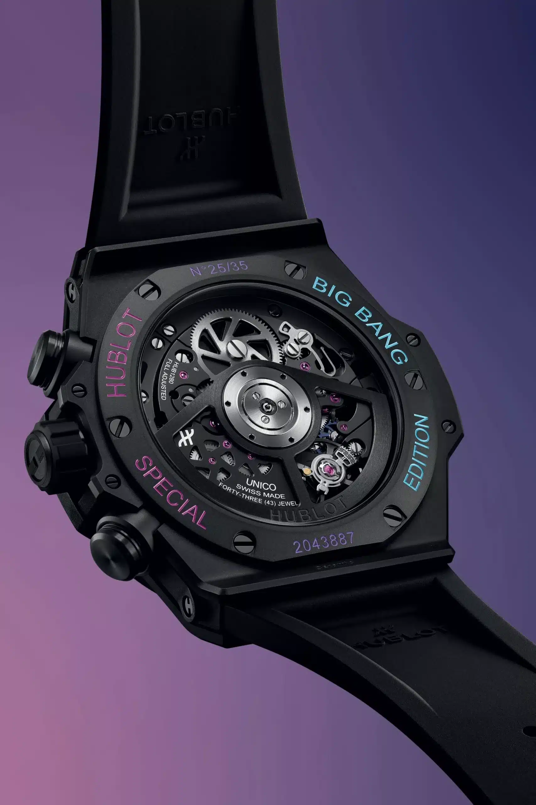 Ticking beneath this technicolor canvas is the in-house Unico HUB1280 movement. This “open heart” framework showcases its 354 meticulously crafted components. With a 72-hour power reserve, it keeps up with Miami’s relentless energy, ensuring you never miss a beat.