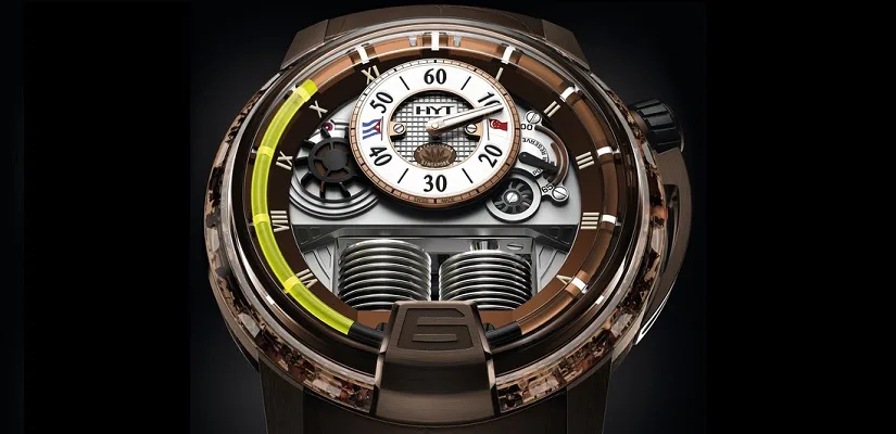In true HYT fashion the type of strap has been thought through with a deep brown alligator strap blending perfectly into the bronzed case lugs.