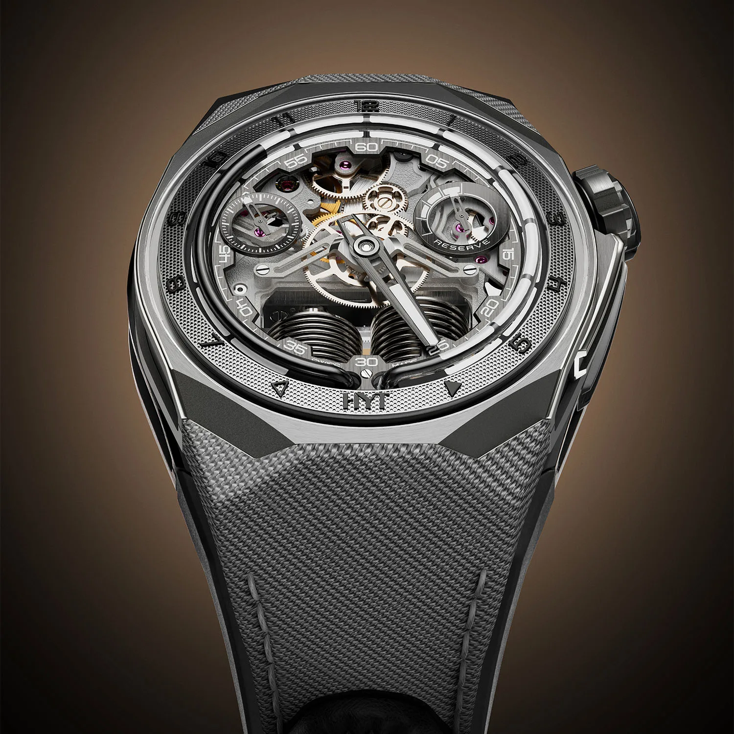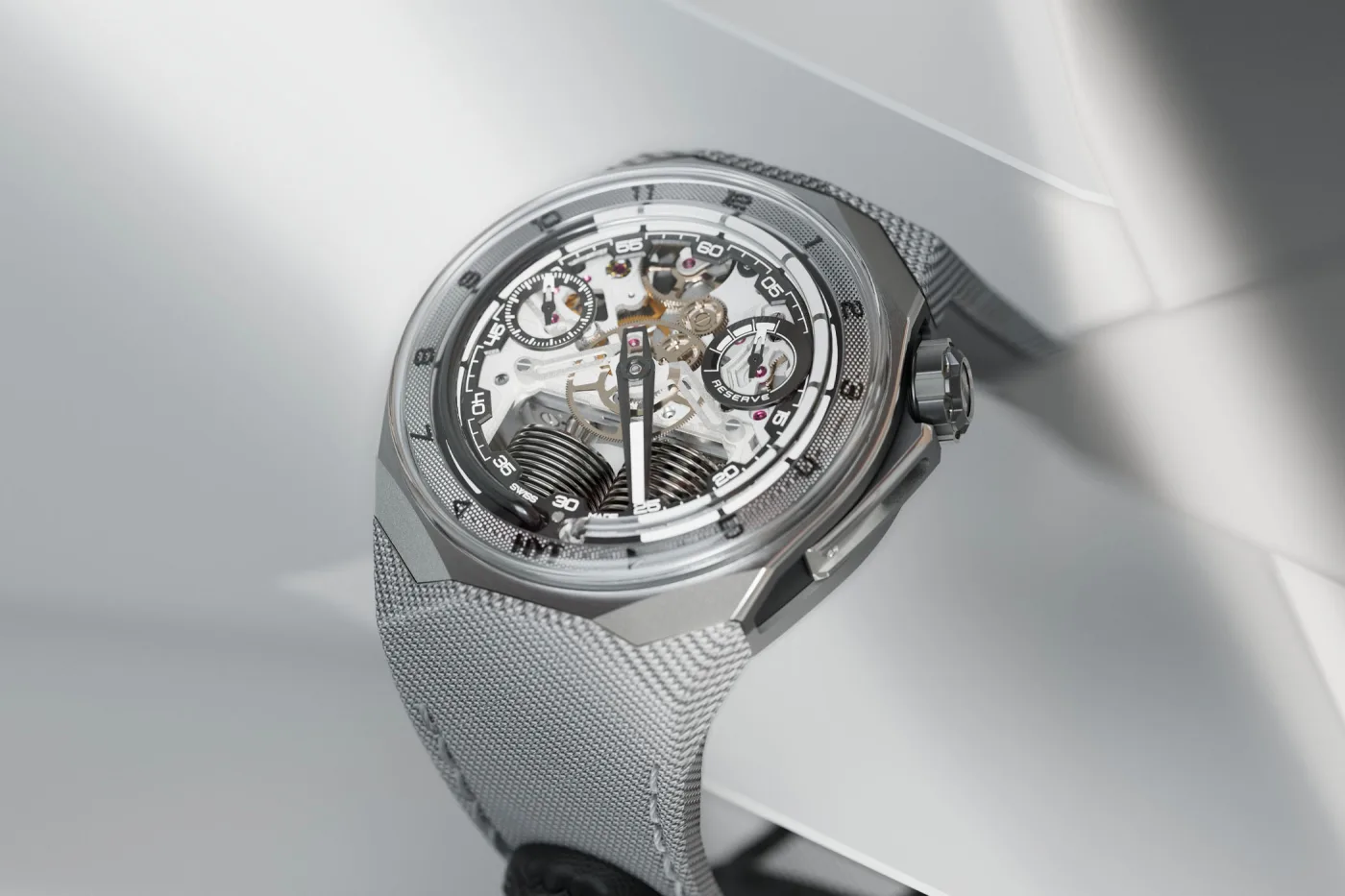 The S1 Titanium demonstrates how a truly modern watch design looks like with information displayed by means of hydromechanics over a skeletonized dial. The case measures 45.3 x 17.2mm and is crafted from silver and black-coated titanium. The angular lines and ergonomic shape should make wearing it a comfortable experience and a snuggly fit on any wrist.