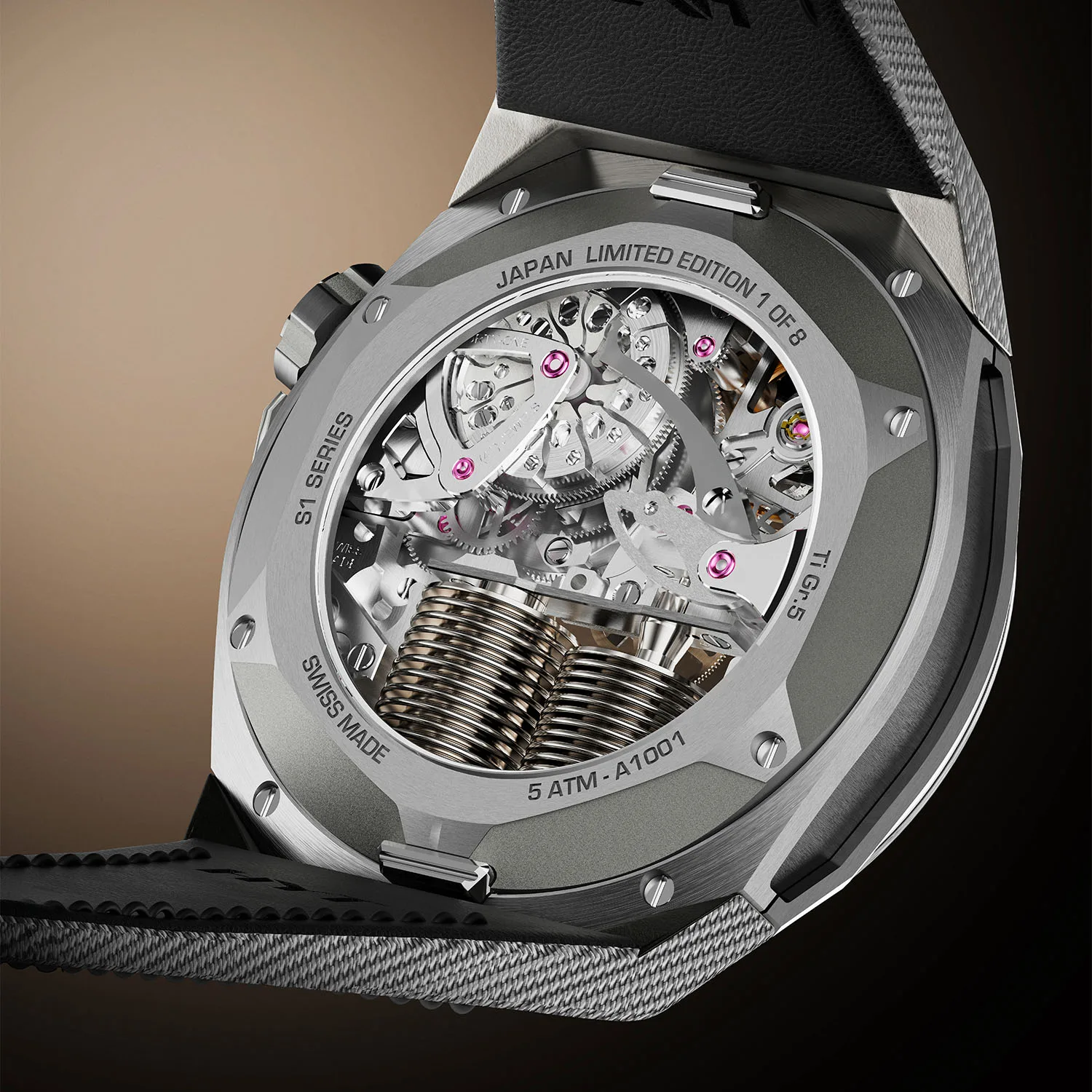 The S1 Titanium “Japan Limited Edition” comes with two strap options: a black rubber strap and a light grey Velcro strap. Priced at CHF 58,000 and limited to 8 examples, it’s available exclusively in Japan.