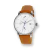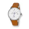 The 40 mm stainless steel case is perfect for dressy occasions. The lugs also allow for quick replacement of the leather straps, utilitarian but trendy. The crown is akin to high-end design almost resembling a diamond shape but where it shines is its efficiency. The white dial is slightly sandblasted giving off a glare free sheen when natural light hits it. The legibility is superb thanks to the fine chrome-plated indexes and hands and of course the modern blue needles for the seconds and complication. The power reserve indicator is at 12 o’clock making it quite the center of attention, the date at 3 o’clock, and the 24 hour counter at 6 o’clock.