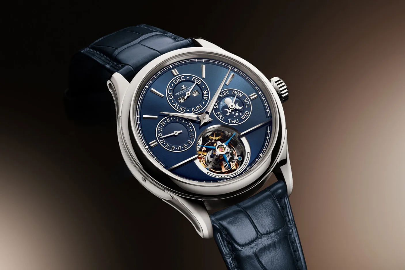 The dials have new colours for 2025, with the platinum models having a blue sunray dial and the gold model a soft brown sunray dial. I’m a little saddened to see they didn’t go for the attractive striped sunray finish they’ve used on the Master Grande Tradition Calibre 950 watches, I think that would really make these pop. Still, all that we have on these new watches looks great, the perpetual calendar subdials seem easy to read and the layout is totally logical.