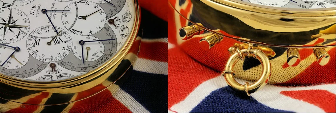 The golden-drum case echoes the classical styling of Harrison’s Sea Watch No.1 or Patek Philippe’s Calibre89. “If Huygens, Harrison or Breguet were alive today,” says managing director Richard Hoptroff, “I’m convinced they would have made the same technology and design choices.”