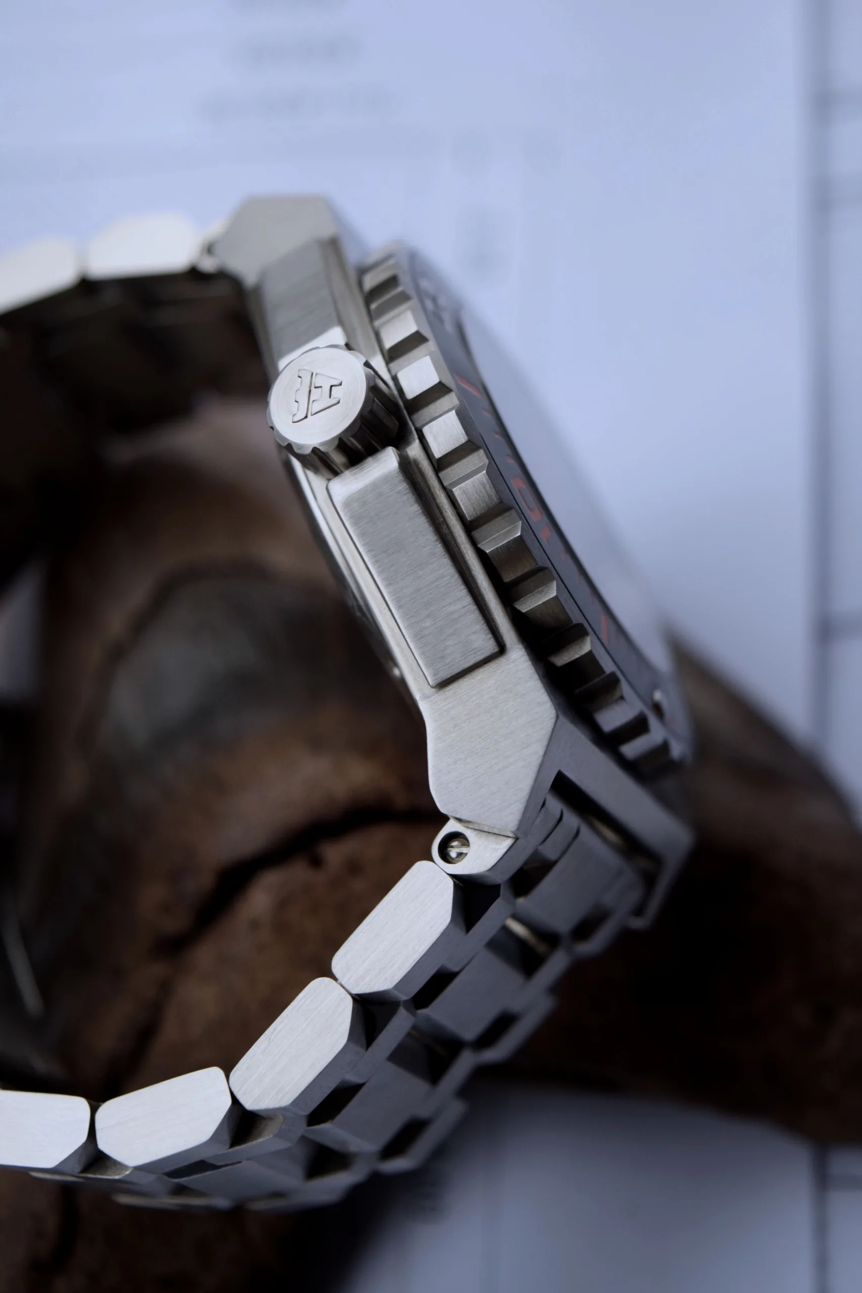 Haldor Abissi is a non-compromising divers watch. Haldor’s portfolio is succinctly punctuated by their remarkable foray into higher-end mechanical engineering techniques. As such you can expect robust and fully functional timepieces. Being a divers watch, Haldor Abissi sports a 45.5 mm marine grade 316L stainless steel case featuring a top of the line unidirectional ceramic bezel made of zirconia (ZrO2) capable of withstanding extreme pressures at 1000 meters deep. The design is definitely handsome with utmost clarity.