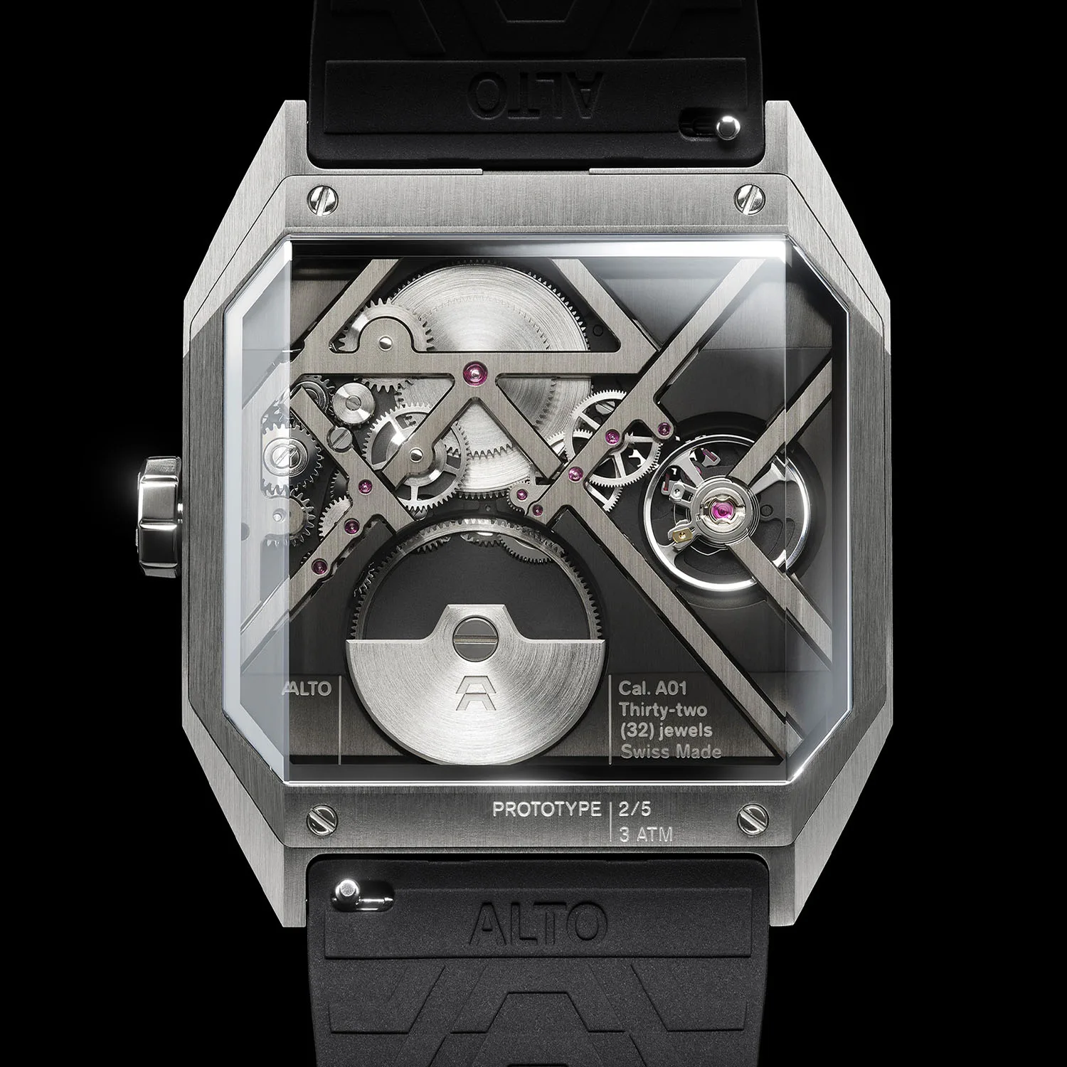Indeed, the calibre A01 is made for ALTO by Les Cercle des Horlogers, which also works alongside watchmakers like Speake-Marin, Trilobe, Armin Strom and was involved in the recently-released Hermès Duc Attelé watch. For the A01, the appearance is chic and modern, combined with a bit of industrial flair. The black background has been grained, while the dark bridges appear to have brushing and chamfering applied. The brushed silvery wheels and micro-rotor stand out further, and a crystal similar to the one on the front covers it all and adds more visual intrigue. This movement has a 4Hz beat rate and a 48-hour power reserve.