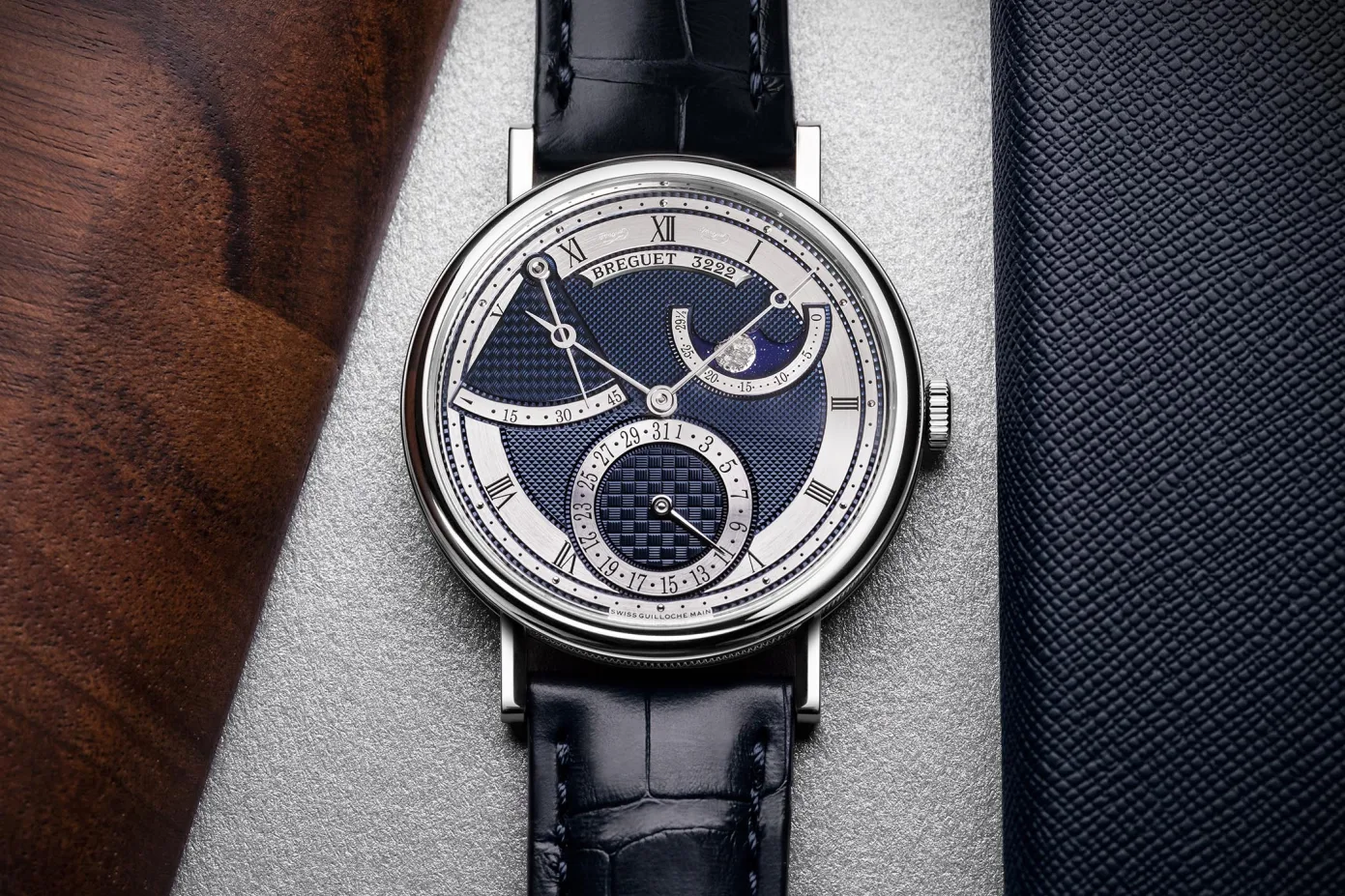This design isn’t new to the lineup, Breguet has been making six variations with a white dial and three choices of metal for a few years, with the other three variants having metal bracelets. The new watch features the updated moonphase that we saw on the 7137, which is made to resemble the moon a little more accurately than other Breguets which typically have a big face engraved onto them. The only other dial changes include the guilloché patterns, specifically inside the time dial and the sub-seconds. It appears that these two new watches will join the current lineup, rather than phase them out.
