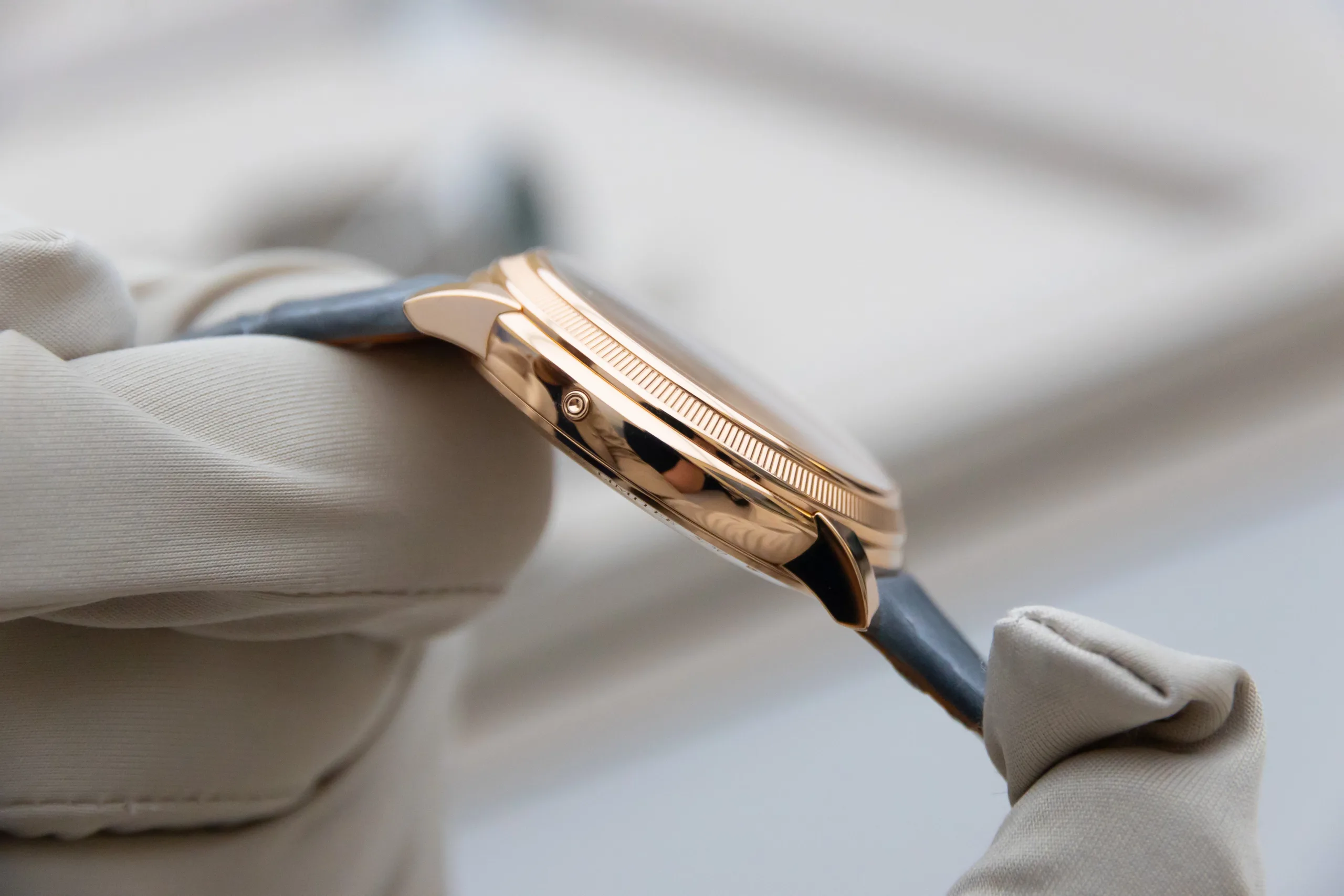 In rose gold one of these costs CHF85,000, and in platinum, it’s CHF92,000. Both watches come with an incredibly supple alligator leather strap.