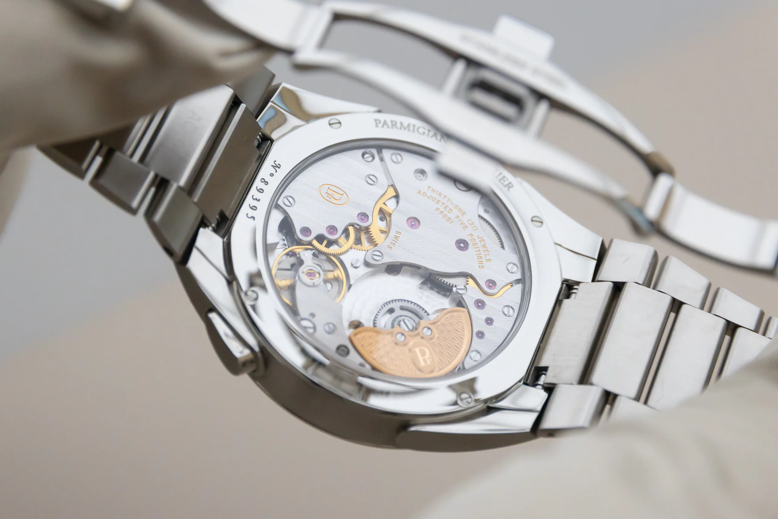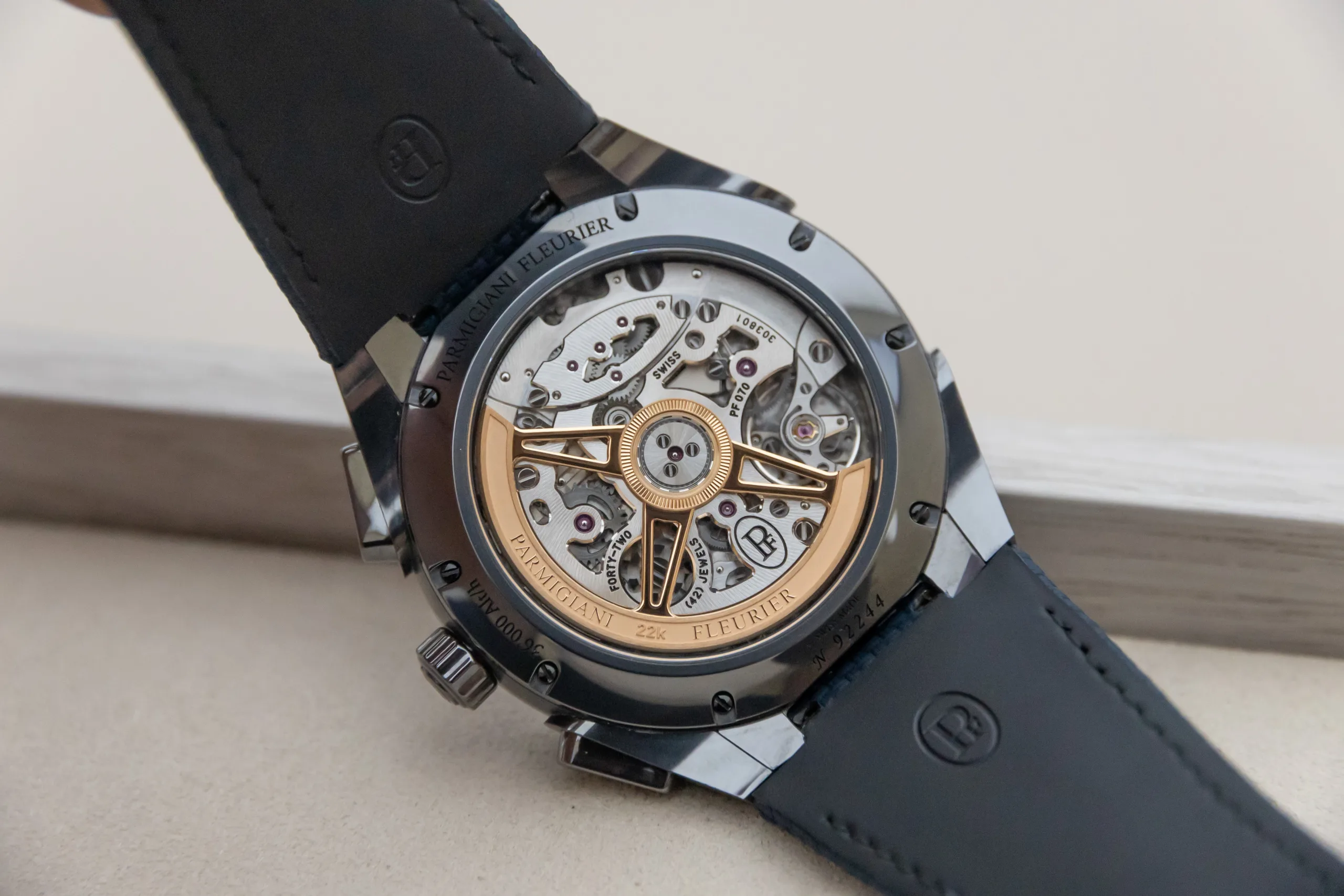 Inside the sporty case is the self-winding calibre PF070-CSND, which is an in-house chronometer movement running at 5Hz for a total of 65 hours.