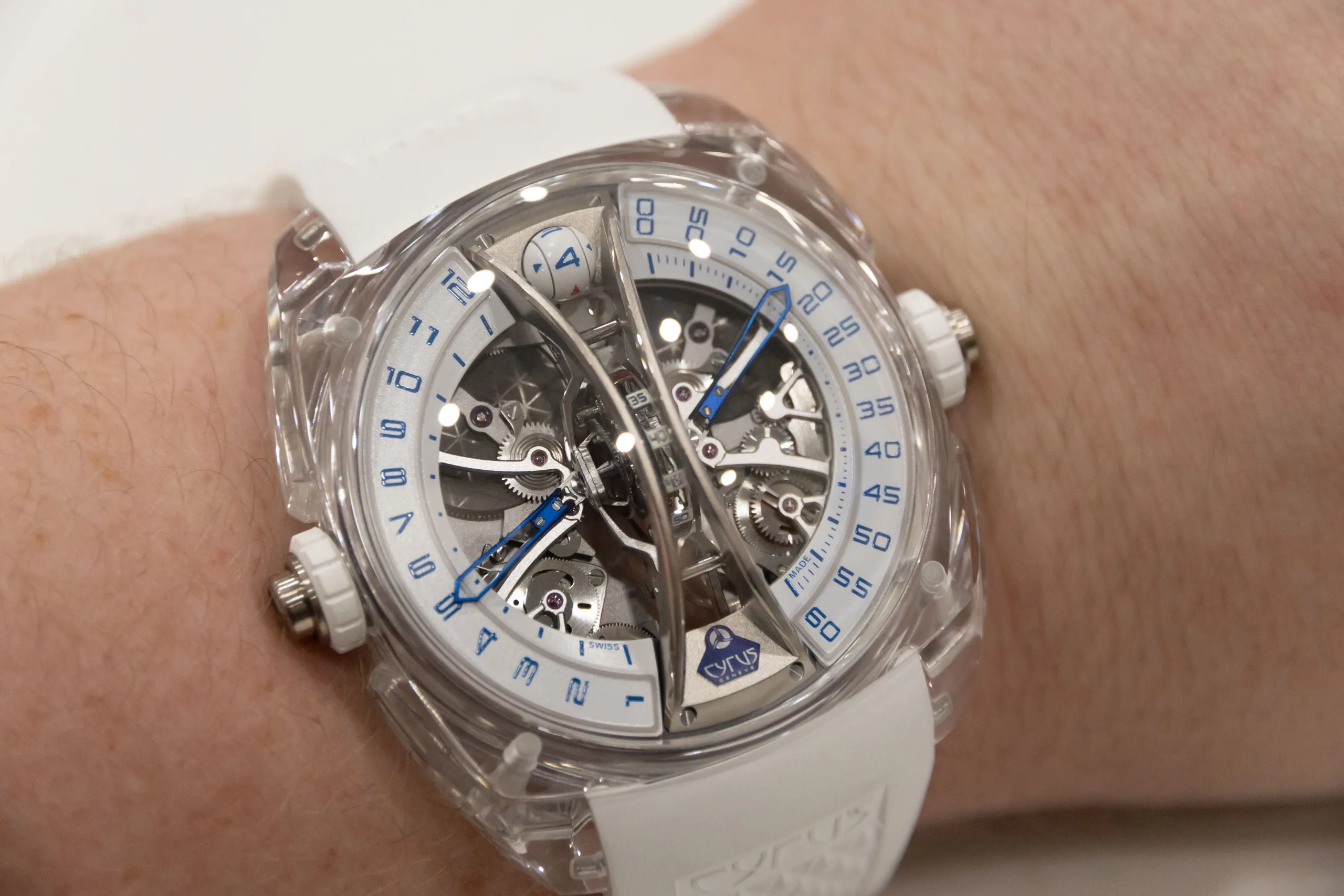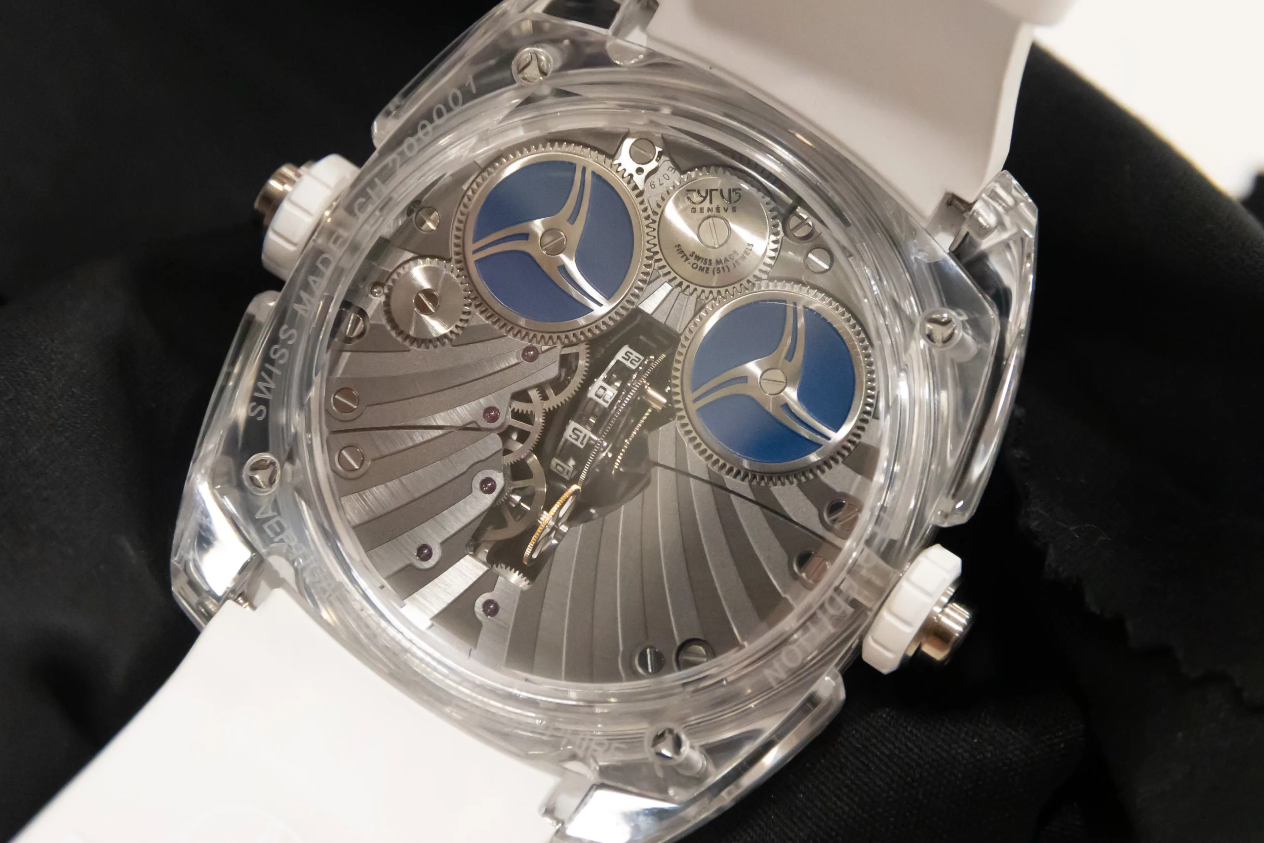 The other watch, new for 2025, is an addition to Cyrus’ Klepcys collection, which is their core collection, although this latest piece is anything but standard. It’s made of sapphire crystal and measures a hefty 44.0mm (excluding crowns) x 19.9mm, although it is 100m water resistant. The domed sapphire crystal shows the hand-wound calibre CYR625, which has a power reserve of over 100 hours. It might be a big and chunky watch, but it has some pretty good specs; the water resistance on a watch like this is very good, as most watches at this level have next to nothing.