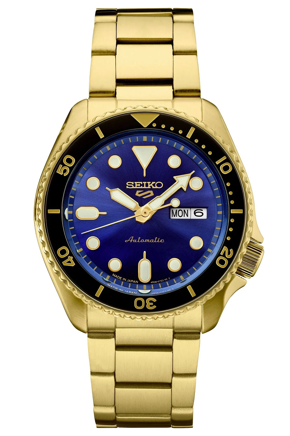 The other two watches, SRPK18 and SRPK20 have gold-coloured cases and bracelets, no two-tone here. SRPK18 also has a matte black dial with a gold bracelet, while SRPK20 gets a brushed blue dial with a gold and black bezel.