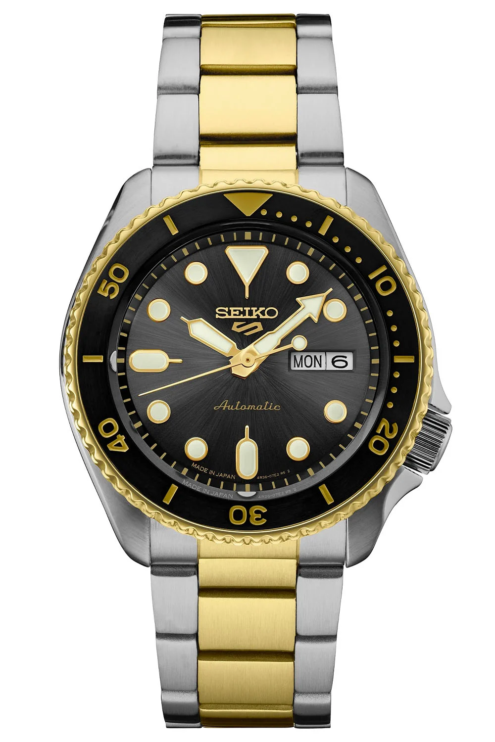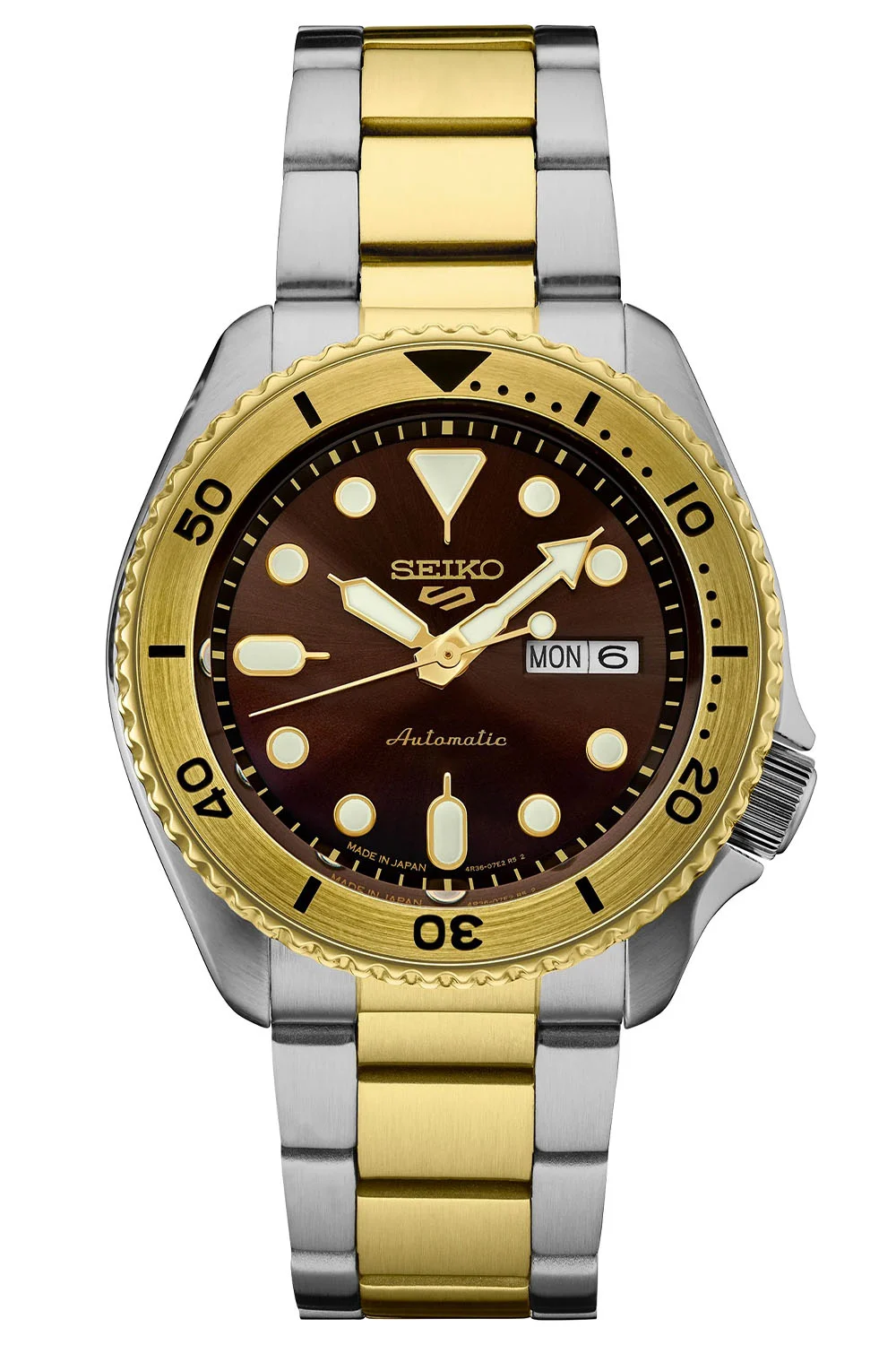 There are four different references on offer. SRPK22 uses a two-tone case and multi-link bracelet with a gold and black bezel. Meanwhile, SRPK24 has the same setup, but with a gold-coloured bezel. The dial of this watch is also brown, while the SRPK22 has a charcoal-coloured dial.
