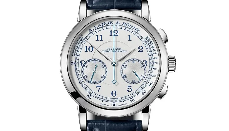 The first one out is the new 1815 Chronograph Boutique Edition, which will make your wrist wet. The new entry-level chronograph from the German high-end brand comes in at 39.5mm in an 18k white gold case featuring blue numerals and a pulsometer scale.