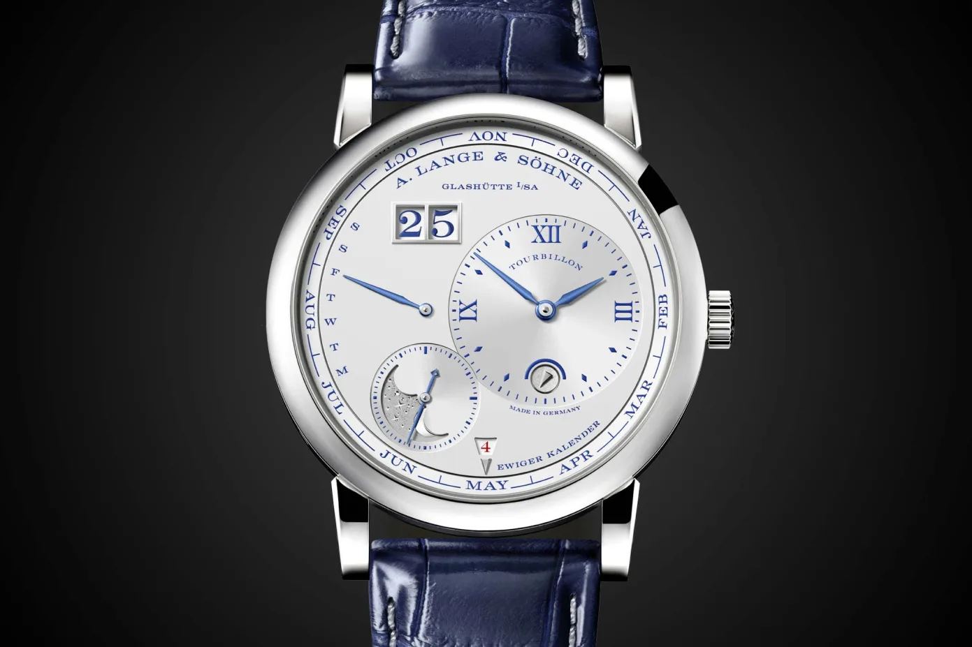 To celebrate the 25th anniversary of A. Lange & Söhne, the brand is unveiling a new birthday present to itself on the 24th of every month this year up until October. That means that once a month, every month, we get to see a new watch with anniversary colours on it. This time around, it’s the turn of one of the big daddies of the collection, the Lange 1 Tourbillon Perpetual Calendar.