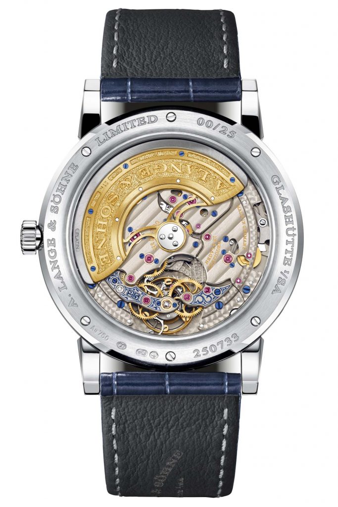 You may remember last month we showed you the Little Lange 1 25th Anniversary model. The Little Lange 1 is the smallest of the collection, as the name suggests, and is primarily a women’s watch. This one is most definitely not a little watch, though it’s not as huge as you’d expect. As you know, complicated watches from A. Lange & Söhne are usually large in diameter and very thick. However, this one is 41.9mm in diameter and 12.2mm thick. Compared to some other models of theirs, that’s rather good. The case is made of 18K white gold as one would suspect.