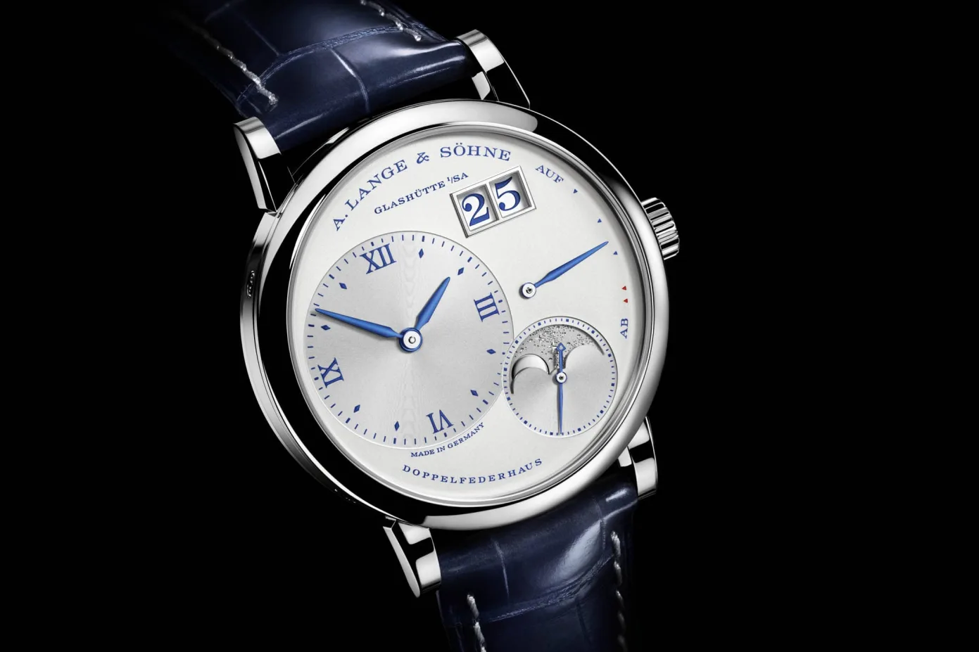 In all the A. Lange & Söhne Little Lange 1 Moonphase “25th anniversary” watch is a great example of understated elegance. The watch would come mated to a blue alligator leather strap and would retail for EUR 42,300. Production would be limited to just 25 pieces.