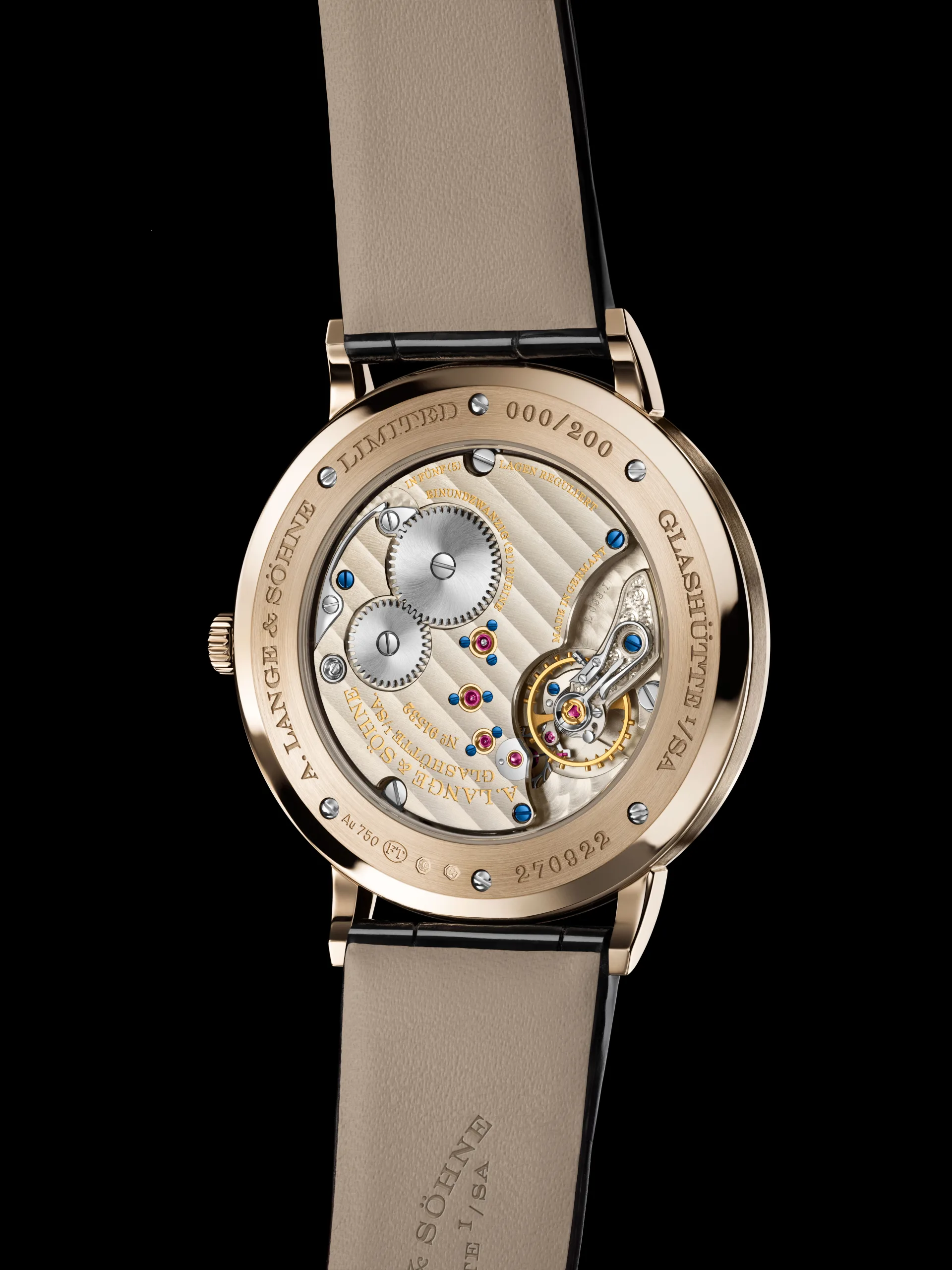 The watches are paired with a gleaming black alligator strap, closed by a buckle fashioned from matching metal. Collectors will find the two references under 211.052 for the 750 Honeygold edition and 211.062 for the 950 platinum version, both capped at 200 pieces.