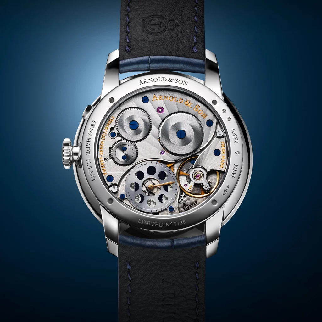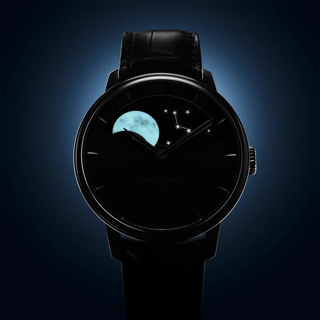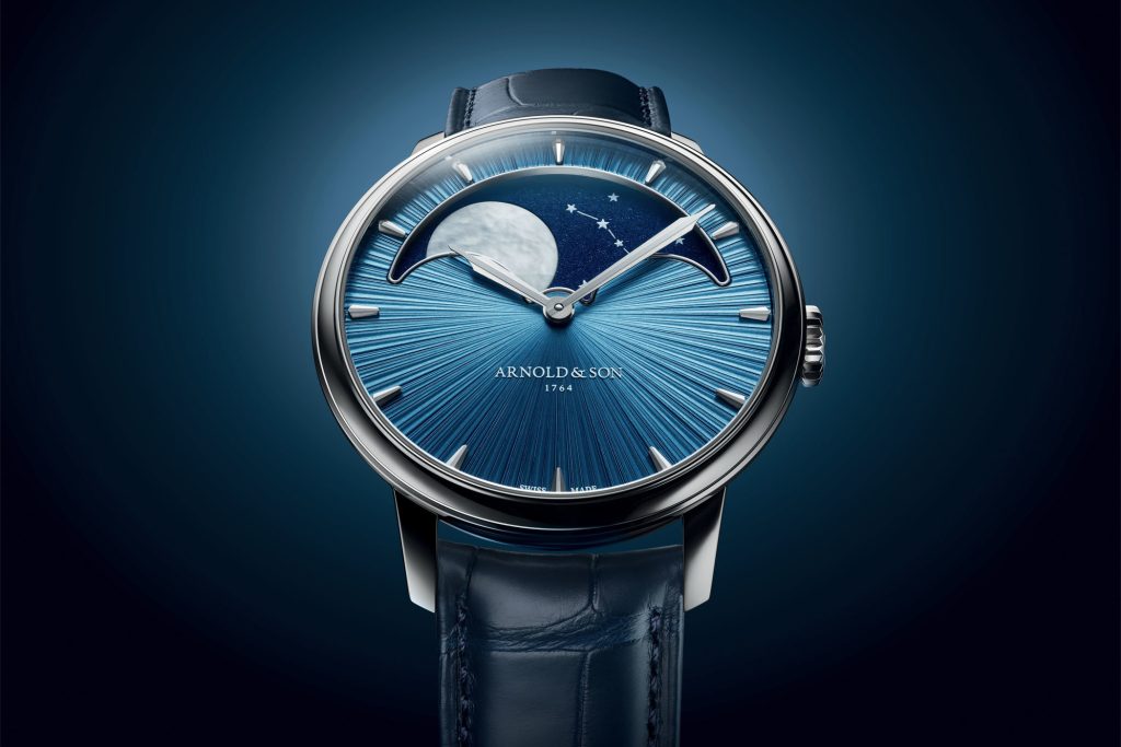 Arnold & Son has unveiled a new addition to its Perpetual Moon collection, the 41.5 Platinum “Celestial Blue”. This stunning timepiece features a platinum case, a celestial blue dial with hand-painted constellations, and a precision moon phase complication. The captivating dial of the “Celestial Blue” timepiece boasts a deep-pleated “Stellar Ray” pattern achieved through irregular engraved rays.