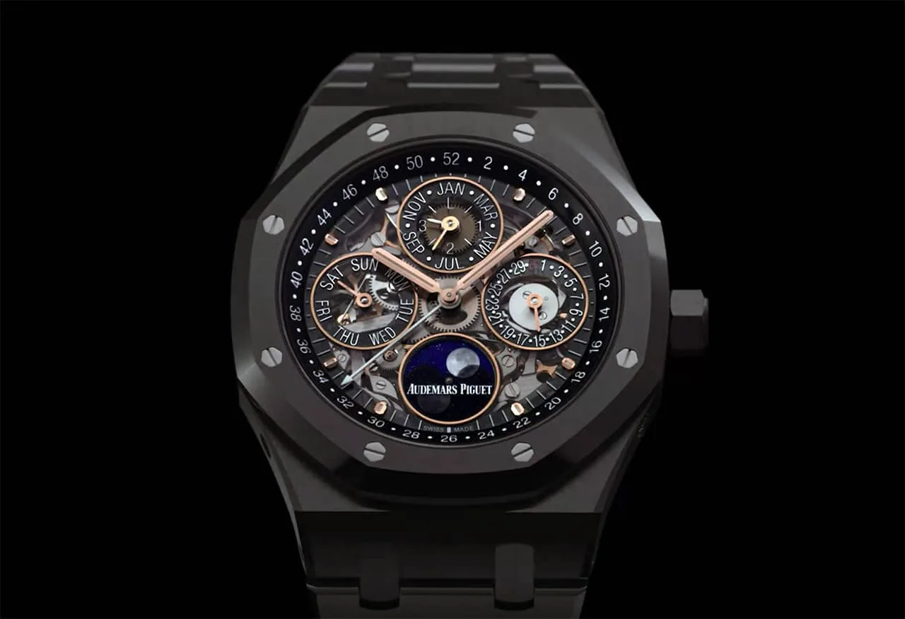 One of the charms of a mechanical watch is to be able to see all the gears and levers that drive it in action. But the experience gets elevated to the next level when you can witness everything right through the face without flipping the watch over and that is exactly what the new Audemars Piguet Royal Oak Perpetual Calendar Openworked Ceramic is all about.