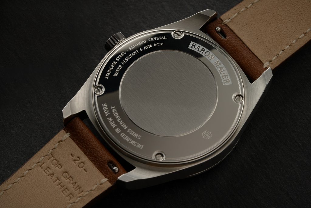 Baron and Mauer wanted to create watches by choosing the best quality materials and certainly shows off in their choices of movements as well. Instead of cutting costs by going for a Japanese movement, the brand has opted for a trusted Swiss movement. The watch is powered by the Sellita SW210-1, which is a hand-wound movement that beats at a frequency of 4 Hz and offers a power reserve of around 38 hours. While it would be great to look at the movement, the brand has taken a conscious decision of hiding it behind the closed case back.