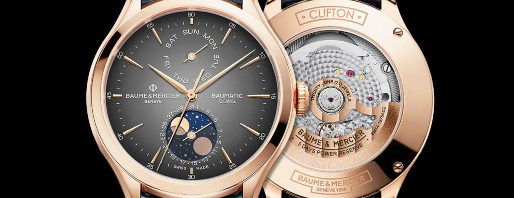 Released back in 2018, the Baumatic is a well-priced, modern everyday wristwatch powered by an innovative in-house caliber. Initially introduced in classic black and white colors, last year, Baume et Mercier brought an exciting blue gradient dial version into the mix to make things interesting. And now for 2020, the Baumatic collection is once again seeing the addition of a new family member, the Baume et Mercier Day-Date Moonphase. Featuring a solid gold construction, a romantic Moonphase display, and a set of practical day-date complications, this new watch presents a more luxurious take on the Baumatic.