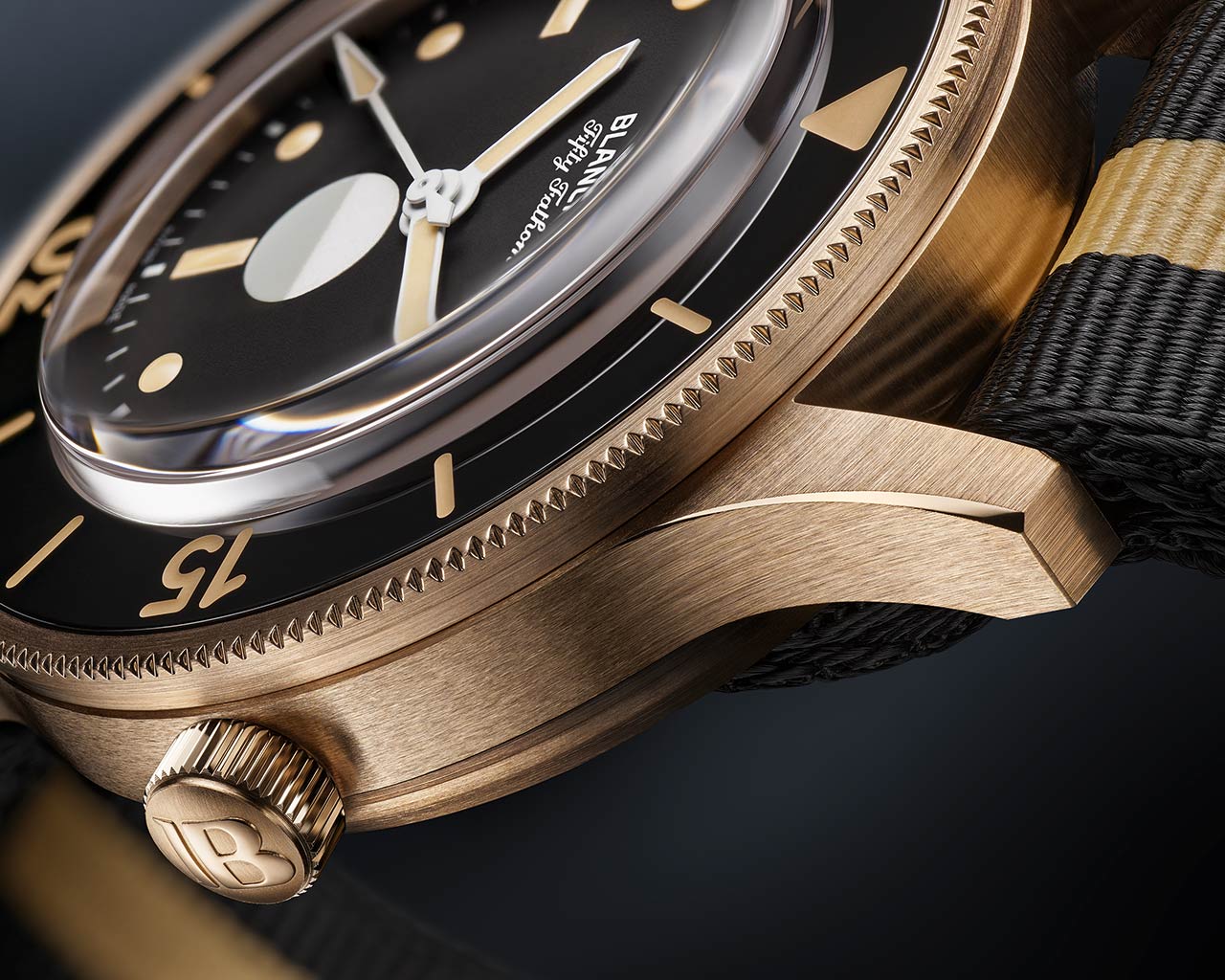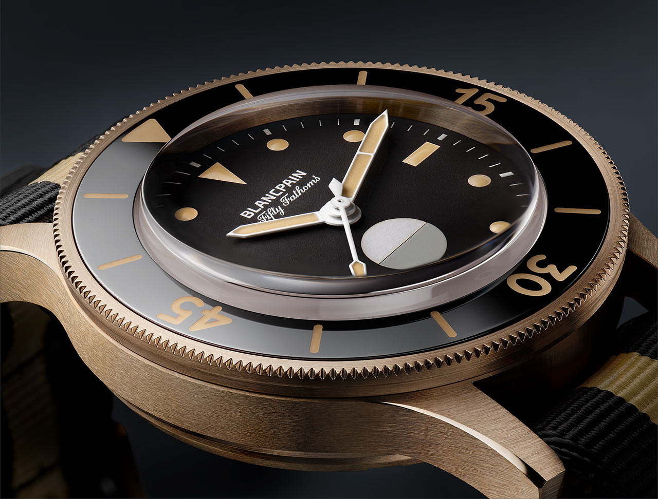 I was quite surprised when this one came out. As far as I’m aware, Blancpain hasn’t made many bronze watches recently (if ever), so to see this one following the trend a little is interesting. Bronze watches are quite unique. The metal’s properties mean it patinates easily and captures a certain charm, or possibly bacteria, as it goes along. This watch isn’t a solid bronze piece, though. It’s made of something called 9K Bronze Gold, a secret alloy of copper (50%), gold (37.5%), silver, palladium and gallium.Â