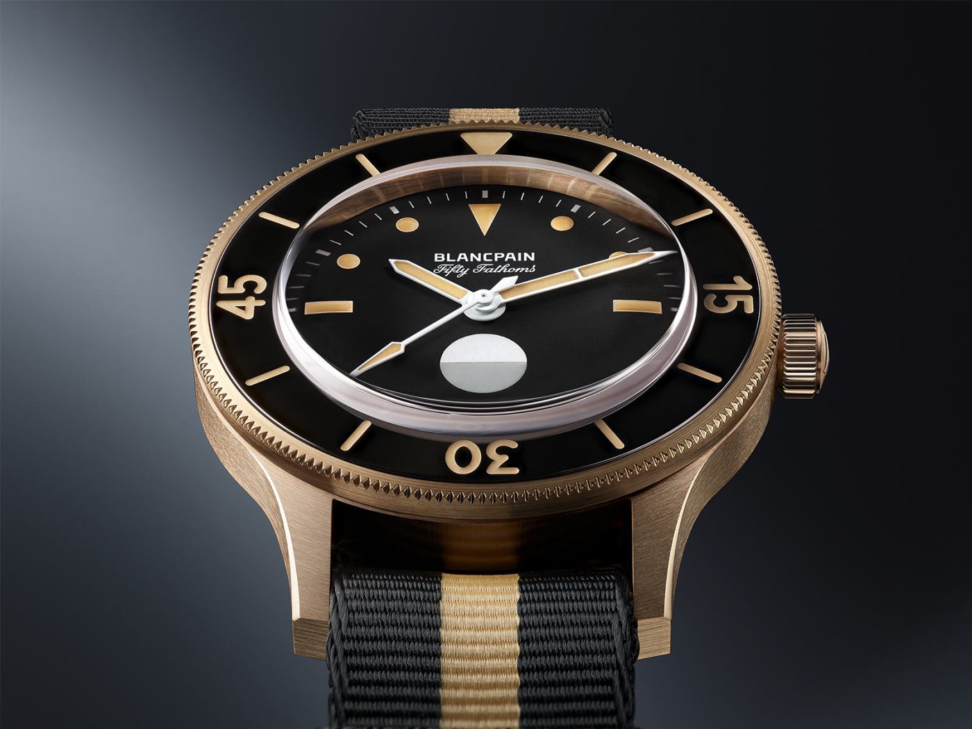 This watch might look like the other Fifty Fathoms Blancpain makes, but. it actually pays tribute to the original MIL-SPEC watches issued to various armed forces from the 1950s. This was the early days of Scuba diving and it was treacherous (it still is, but not to the same level), but the various navies of the world required sub-surface forces, and so those forces needed equipment that worked. At the time, Blancpain’s watches were only available to armed forces as issued equipment, a business model that would ruin them when the quartz crisis hit in the 1970s. In 1957, Blancpain issued diving watches with a dot on their dials, this was required by the US Navy as the dot reacts to moisture and can therefore indicate to the soldier if their lifeline tool has been compromised.