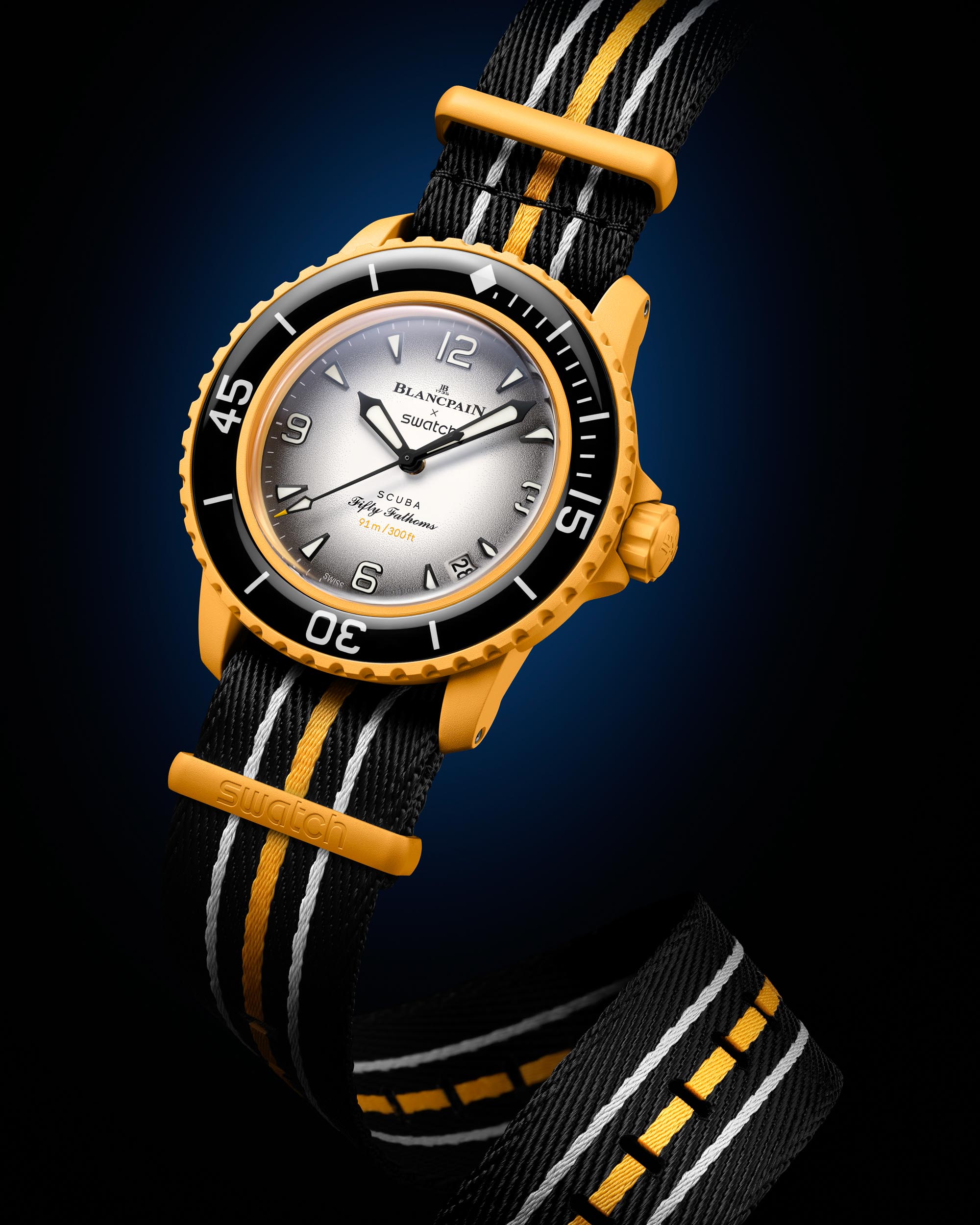 The news is out already, but we’re here anyway! There have been rumours of a new Swatch collaboration model coming out recently, and about a week ago those rumours became a little more specific in stating that Swatch would be giving a Blancpain model the same treatment as it did to the Speedmaster Moonwatch the other year. A few days ago, those rumours were answered by Blancpain boutiques suddenly having mysterious yellow Pelican cases appear in their windows, Blancpain supplies a Pelican case with some of its Fifty Fathoms diving watches as the official watch box. Then, yesterday evening, the rumours were shown to be correct, Blancpain worked with Swatch to create a new collaboration piece broken down into five models.