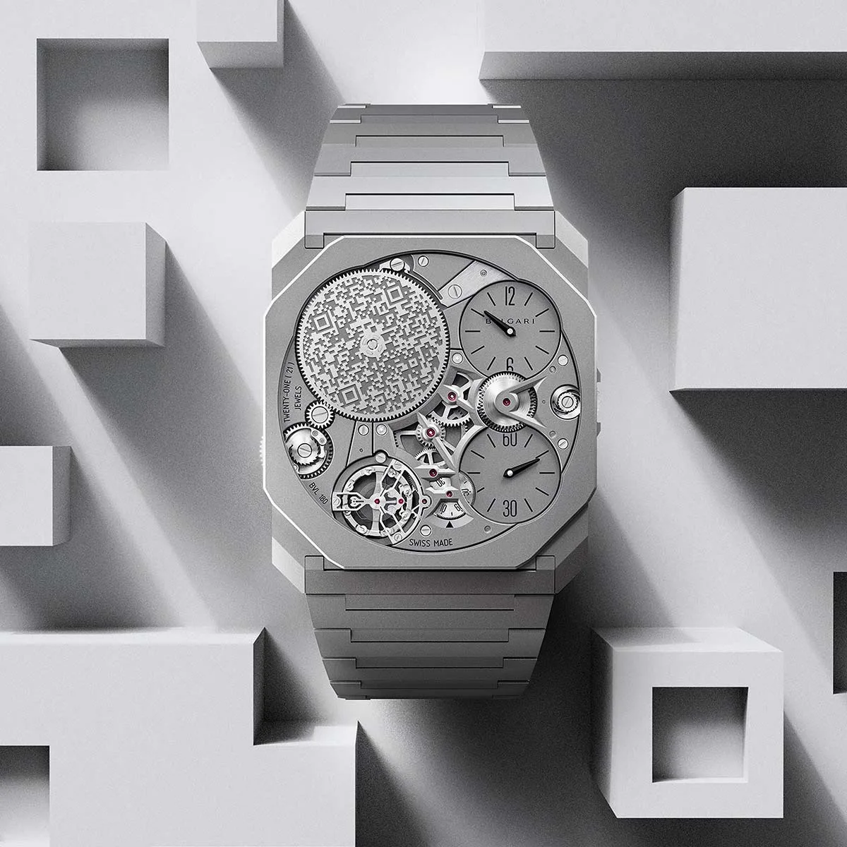 Just like Piaget, Bulgari had to re-think everything on the construction of the watch. The caseback is also the mainplate on the watch, this is something their competitor has been doing for a while. The dial also holds the components in place, cutting out the traditional movement-in-case technique and making the movement and case one. To protect from the next #bendgate, titanium is used for the lugs and bezel, while the caseback/mainplate is made from tungsten carbide.