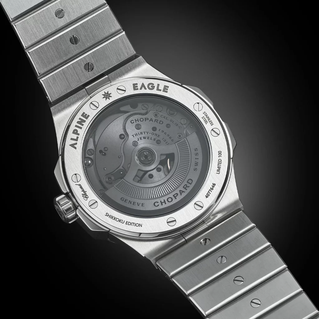 The watch is powered by the in-house automatic Chopard calibre 01.15-C, which has a 60-hour power reserve and is COSC-certified. The watch is fitted with a brushed and polished integrated bracelet in Lucent Steel, featuring a triple-folding clasp with safety pushers. The watch is priced at JPY 2,156,000 (EUR 16,600 with taxes in Europe) and is exclusively available in Japan.