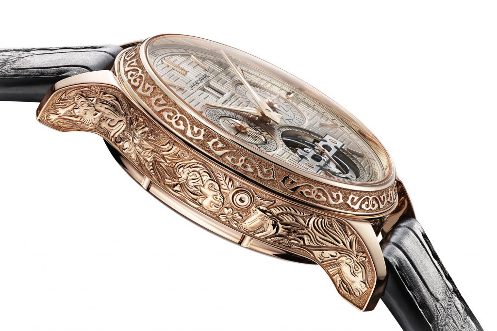 Based on the already complicated L.U.C Perpetual T movement, which features a tourbillon, perpetual calendar and 9-day power reserve thanks to Chopard’s Quattro barrel system, the one-off piece for 2019’s year of the pig takes the sophistication a step further. The main draw to the eye will be the dial, which has a beautiful pattern etched into it that I suppose is reminiscent of flooring in traditional Chinese dwellings. However, the real draw of the eye should actually be the hand engraved case.