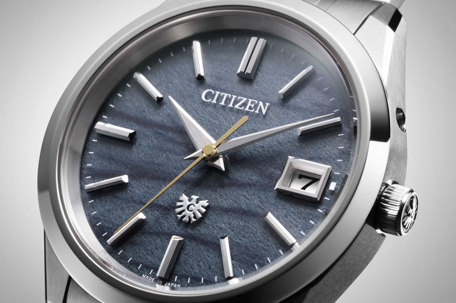 The 38.3mm case, made from Citizen’s proprietary Super Titanium, offers a lightweight and robust feel while being highly scratch resistant. The real star of the show is the dial, crafted from indigo-dyed washi paper. This traditional paper, used for centuries in Japanese screens, boasts unique patterns due to the pole-wrap shibori dyeing technique. A sapphire crystal protects the dial, ensuring clear visibility of the silver-toned hands and indices and offers water resistance up to 100 meters.
