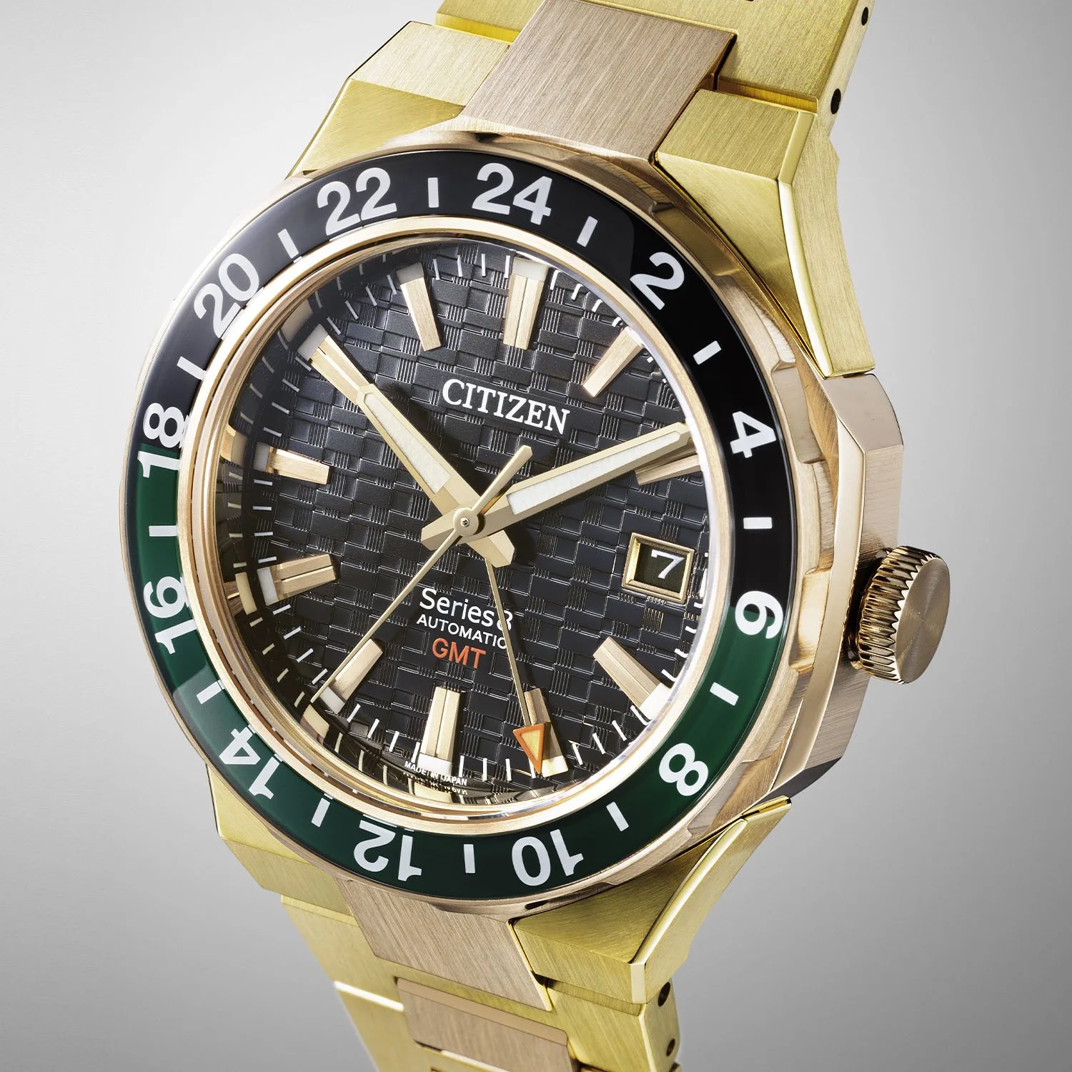 The Citizen Series 8 collection debuted in 2021, introducing a bold vision for mechanical watches with sharp lines, sporty designs, and accessible pricing. Among its standout models, the Series 880 GMT gained popularity for its true GMT functionality and traveler-focused features. Over the years, Citizen expanded the collection with notable releases, including a limited edition gold-coated GMT in 2023. Now the Series 880 returns with the new NB6033-51E, an eye-catching edition blending dual-tone gold, a black-and-green bezel, and intricate dial detailing.