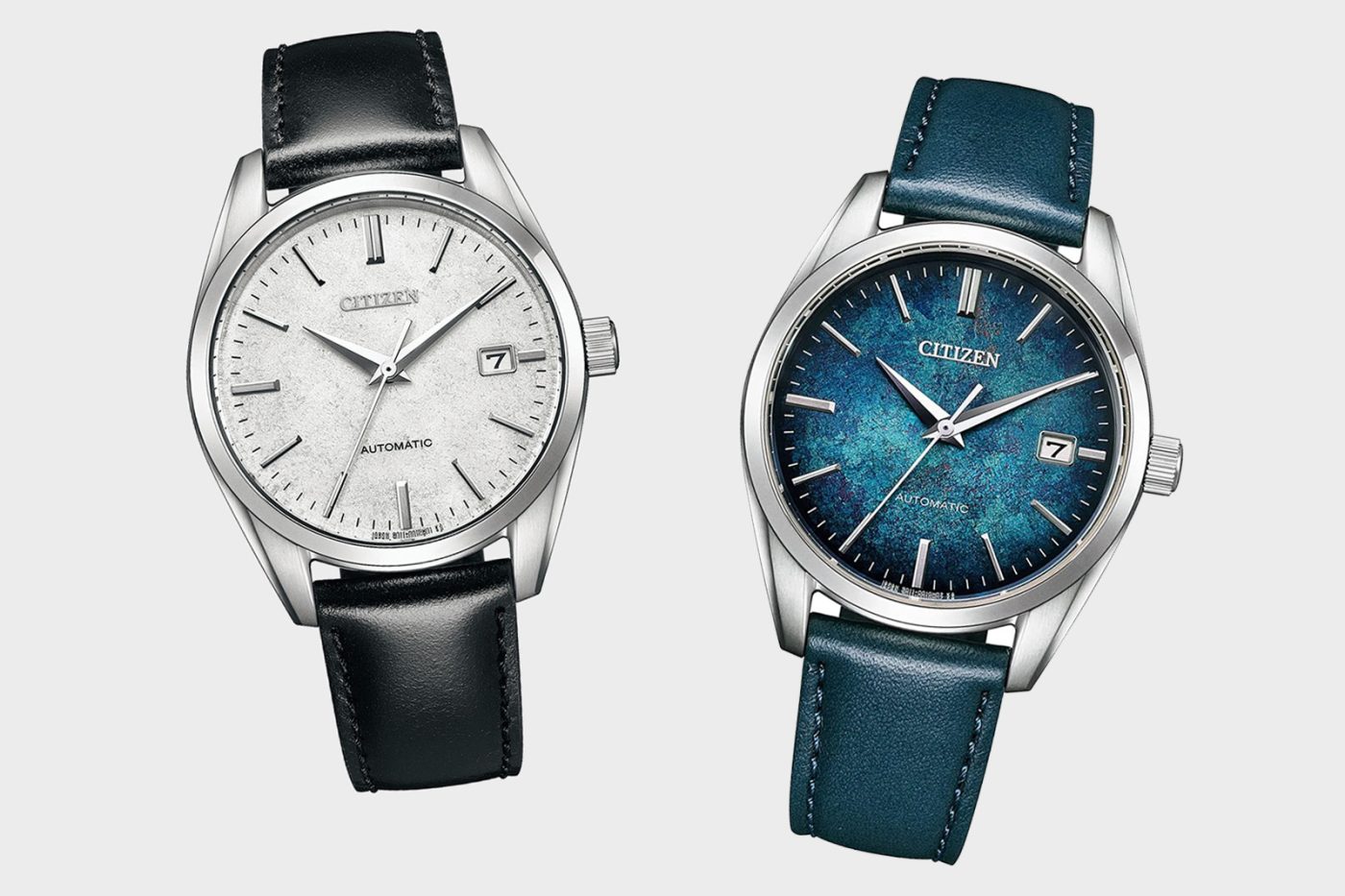 These watches are not just classy but classy in a subdued way. Their stainless steel cases (with hardening treatment) measure 38.2mm x 12mm. They also have 100m water resistance and are attached to leather straps with butterfly clasps. Inside the cases is the calibre 9011, an in-house movement with a 4Hz beat rate, 42-hour power reserve and quickset date. The movement is automatically wound and visible through the caseback—citizen rates their accuracy as being between -10/+20s per day.