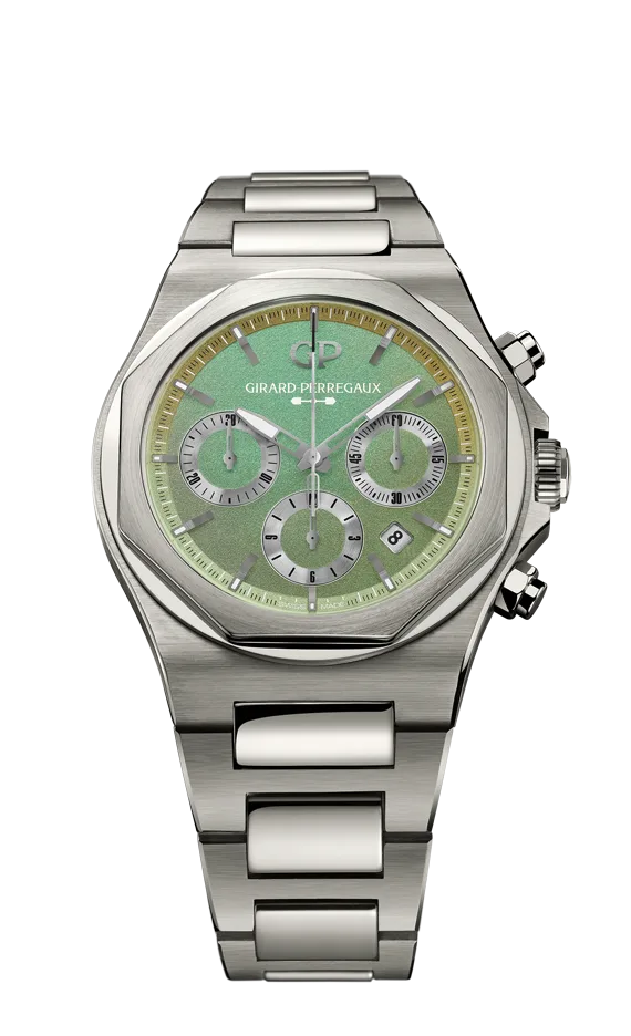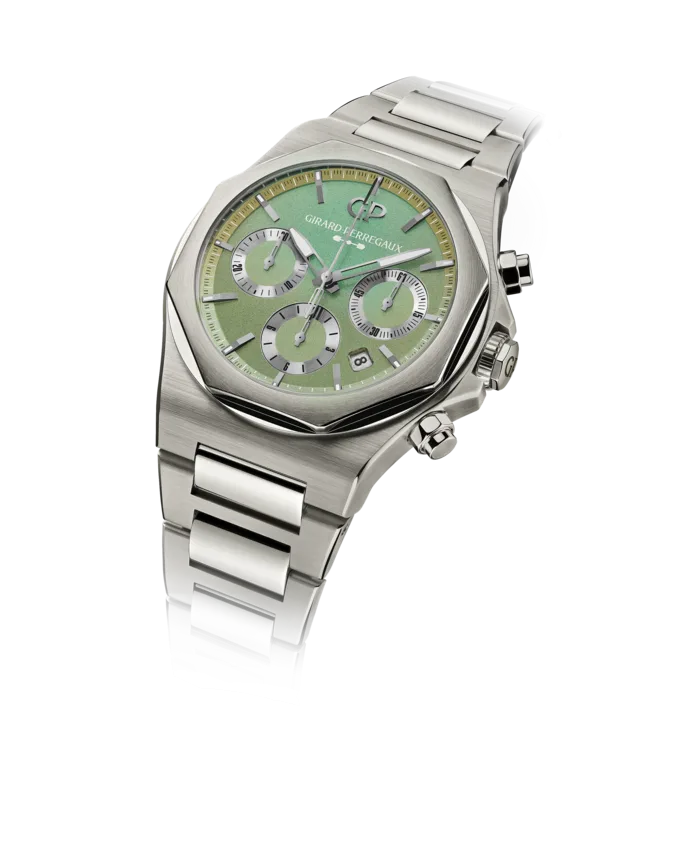 The bezel, as multi-sided as it may be, doesn’t demand as much attention as the green dial. Green has been associated with British racing cars since the days that motor racing became a thing in the early 1900s. The dial of this watch isn’t British Racing Green, but the light green colour is eye-catching to see; Girard-Perregaux happened to describe it as ‘arresting’, which is an interesting choice of words. They say that making the dial involves 14 separate steps and 15 ultra-thin layers of paint.