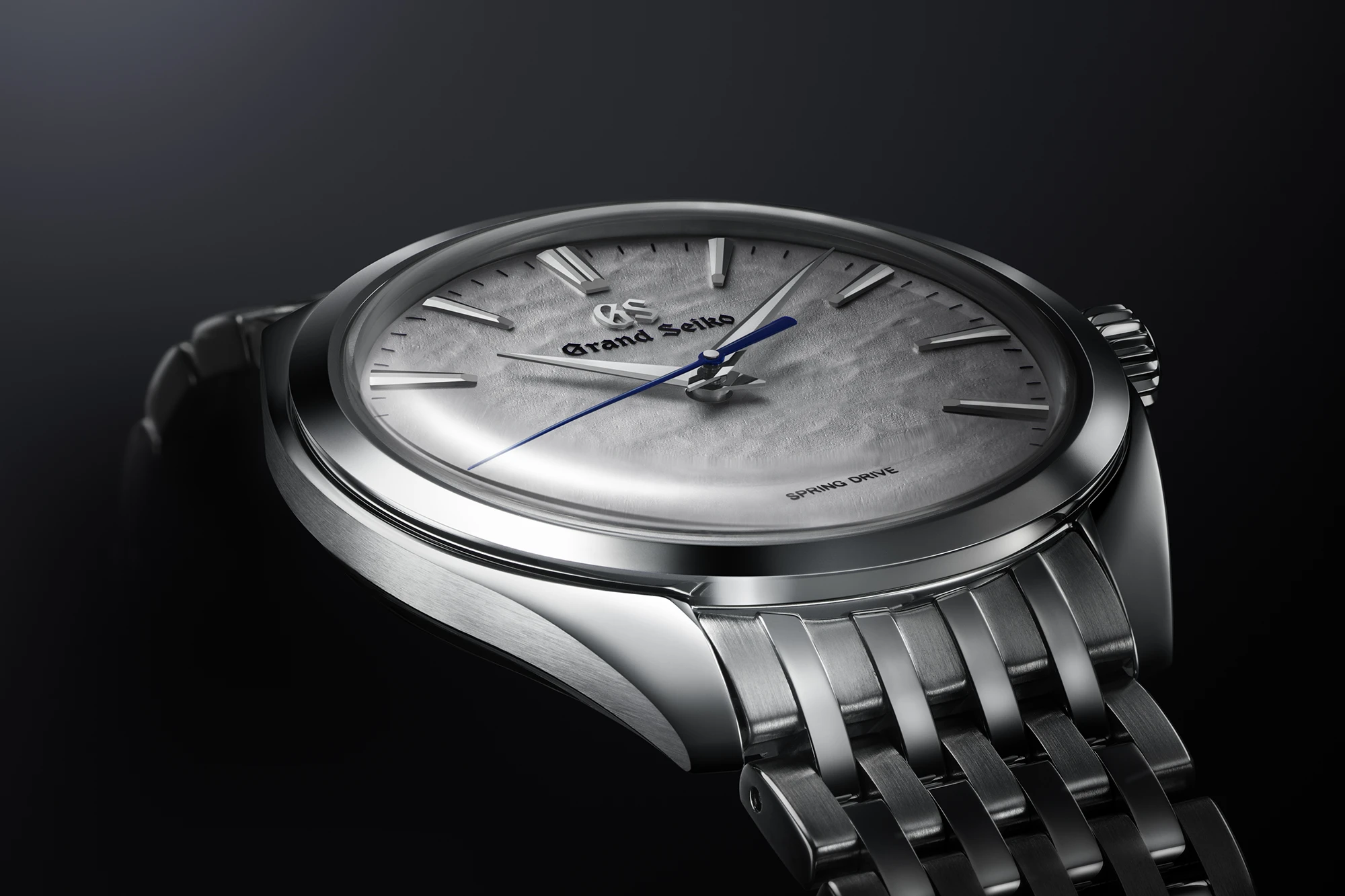 This icy texture has been captured on the dial beautifully by the team of Grand Seiko, who hammered out the surface using a mould. I love that Grand Seiko kept it minimalist. Applied markers and an applied logo blend nicely but remain obvious, while a blue second-hand sweeps over it all smoothly.