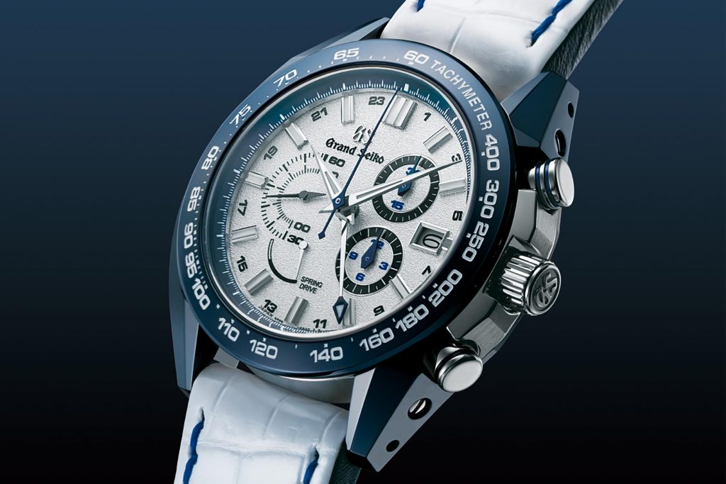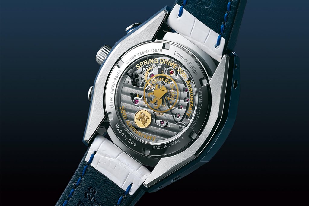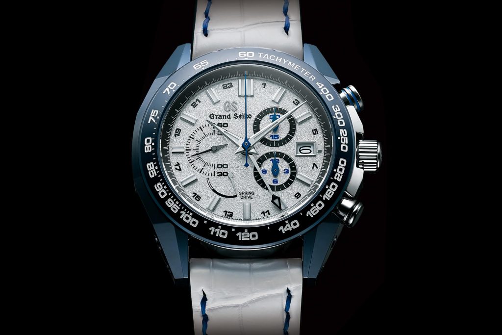Complimenting the watch are the looks. I’ll be honest, the anniversary Spring Drive watches introduced at Baselworld this year were a bit messy to my eyes. That’s a personal opinion, and with the GTR that’s completely gone, this watch with the white and blue strap and blue titanium/ceramic case looks unreal. Despite the dial layout being nearly identical (this one has a retrograde seconds hand whereas the others didn’t) to the previous, it totally works now.