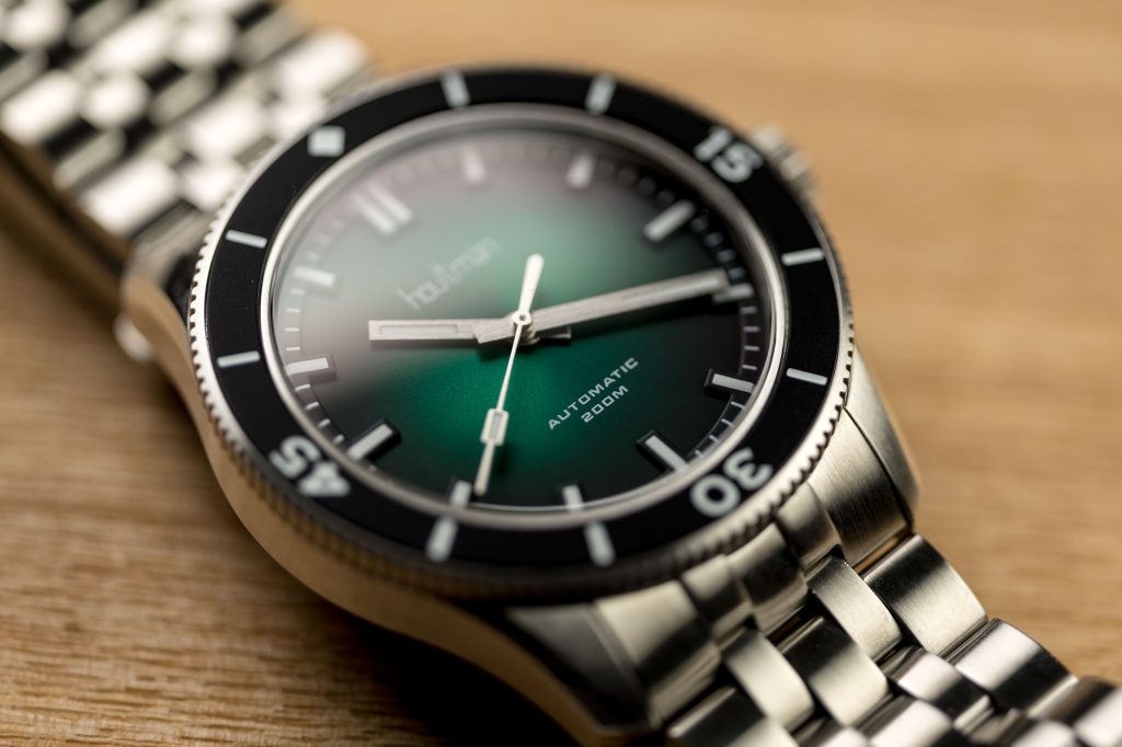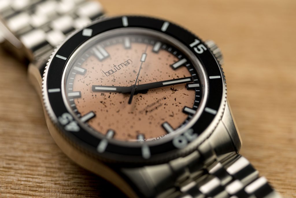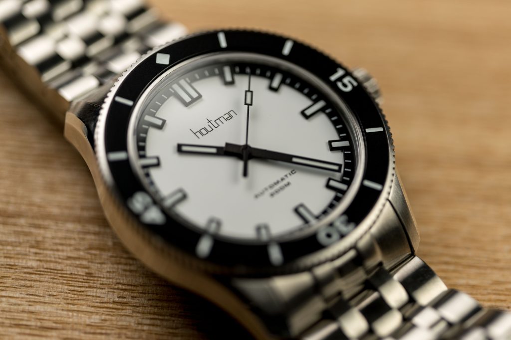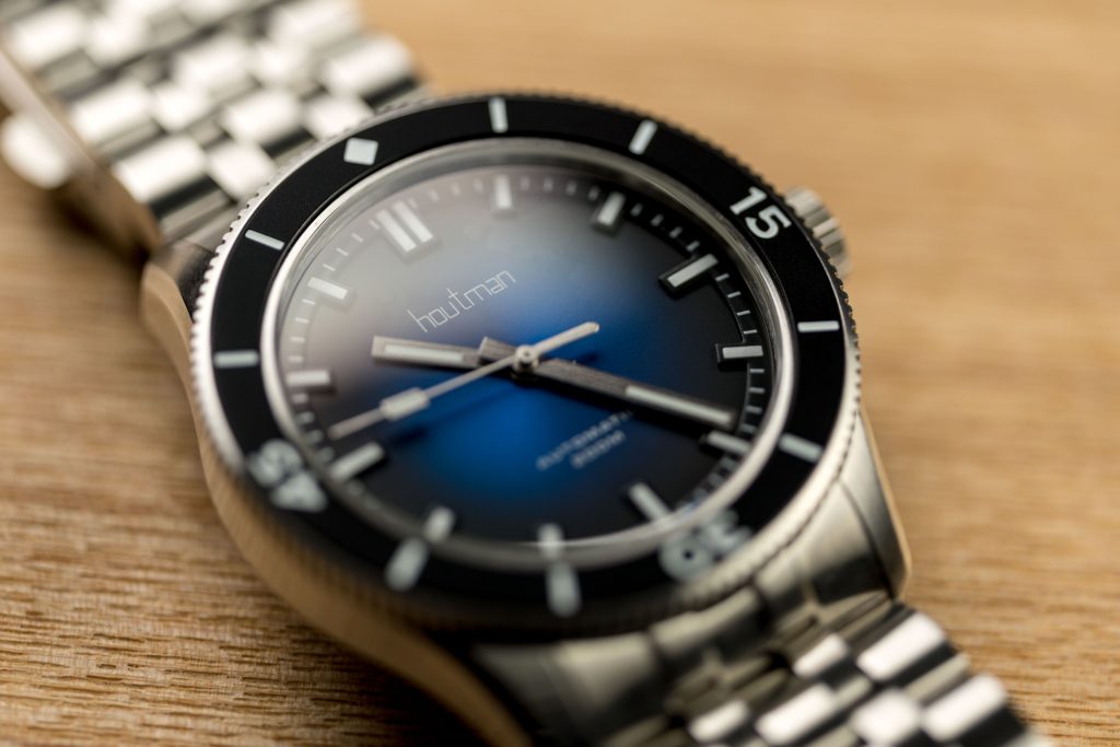 Beyond its aesthetics, the Pilbara dive watch exhibits exceptional craftsmanship, a hallmark of Houtman Watches. The meticulous attention to detail is evident throughout the timepiece. A two-piece construction of the dial creates depth – the markers almost float above the main dial. Superb polished chamfers feature on the lugs, while the rest of the case features a very nice brushed finish. The watches feature generous applications of Super-LumiNova BGW9 on the markers, hands, and bezel, ensuring legibility even in the darkest depths. The ever so slightly double-domed sapphire crystal with anti-reflective coating guarantees durability and optimum clarity, safeguarding the dial from scratches and enhancing underwater visibility.
