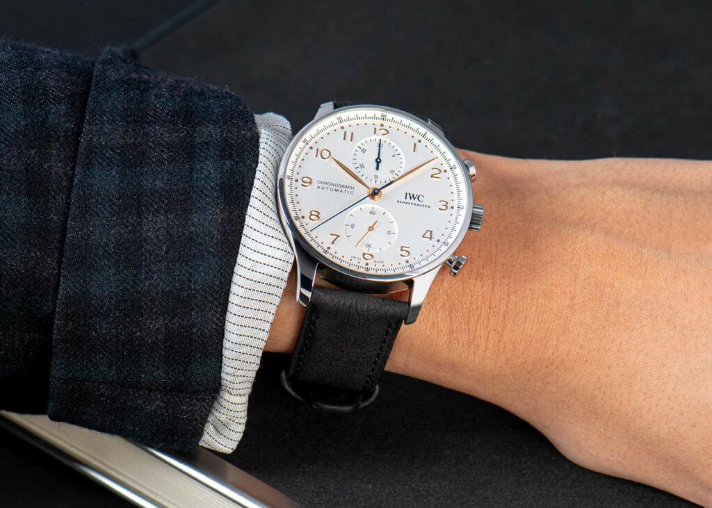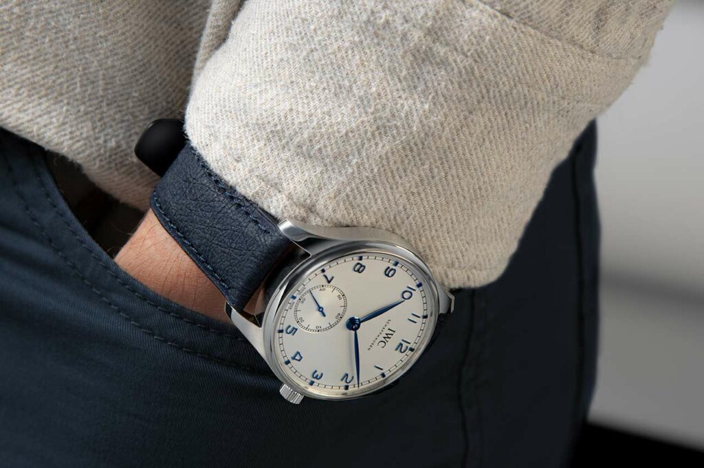 Its new range of TimberTex straps is made from trees. 80% of the strap’s constitution comes from the cellulose of trees grown in sustainably managed forests in Europe run by the non-profit Forest Stewardship Council. A factory in Italy then uses the cellulose to make a thick leathery material using methods that are similar to traditional papermaking. The sheets are then dyed using all-natural dyes and cut into straps. To make the straps more comfortable, recycled microfibre is used to pad them out before they are sewn together with recycled thread. IWC says that, overall, there are 60 operations involved in creating a TimberTex strap. Still, they are keen to point out that the most important factors are the sustainably sourced material and the craftsmanship involved in each step.