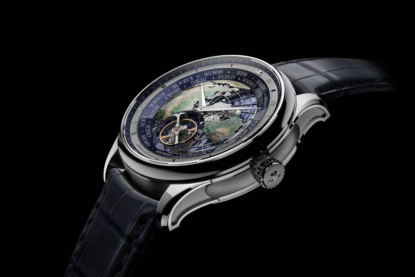 Keeping track of time across different cities throughout the world at the same time is not something new, but the Master Grande Calibre 948 brings forth a visually enticing and refreshing take on the concept. On the technical front, Jaeger-LeCoultre has used the calibre 948, a mechanical tour de force that is equipped with a flying tourbillon and comprises 388 components. The flying Tourbillon not only rotates on its axis to keep track of the seconds, but it also makes a complete rotation of the dial in 24 hours, reciprocating the rotation of the earth on its axis and allowing it to keep track of time across different cities of the world. The movement is exceptionally finished. For instance, the bridge on which the caliber’s oscillating weight is mounted is engraved and represents a planisphere seen from the North Pole, echoing the dial of the timepiece.