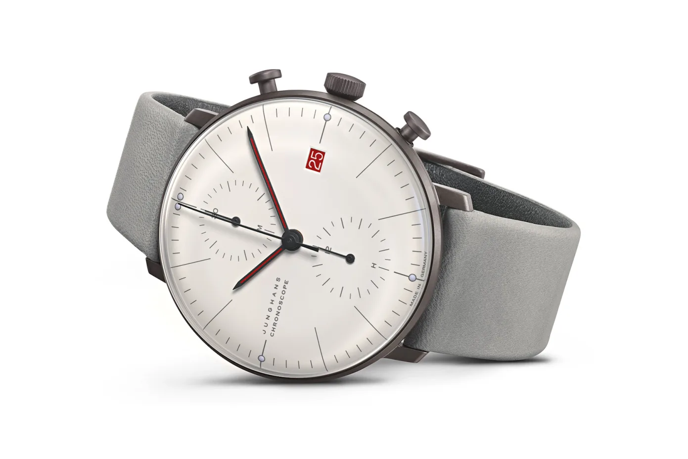 The Junghans Max Bill Chronoscope 100 Jahre Bauhaus would come attached to a grey leather strap and would retail for EUR, 1995. Production would be limited to just 100 pieces.