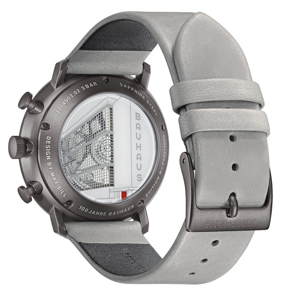 The Junghans Max Bill Chronoscope 100 Jahre Bauhaus would come attached to a grey leather strap and would retail for EUR, 1995. Production would be limited to just 100 pieces.