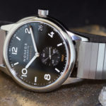The stainless steel case measures 44m in diameter and is constructed of three parts. Some might think this is quite similar to established seventies models, the Patek Philippe Nautilus in particular, but we should consider that there are only so many Seventies styles that can be put into a watch, big squares are a key theme as well. This case is water resistant to 100m and presented on a rubber strap.