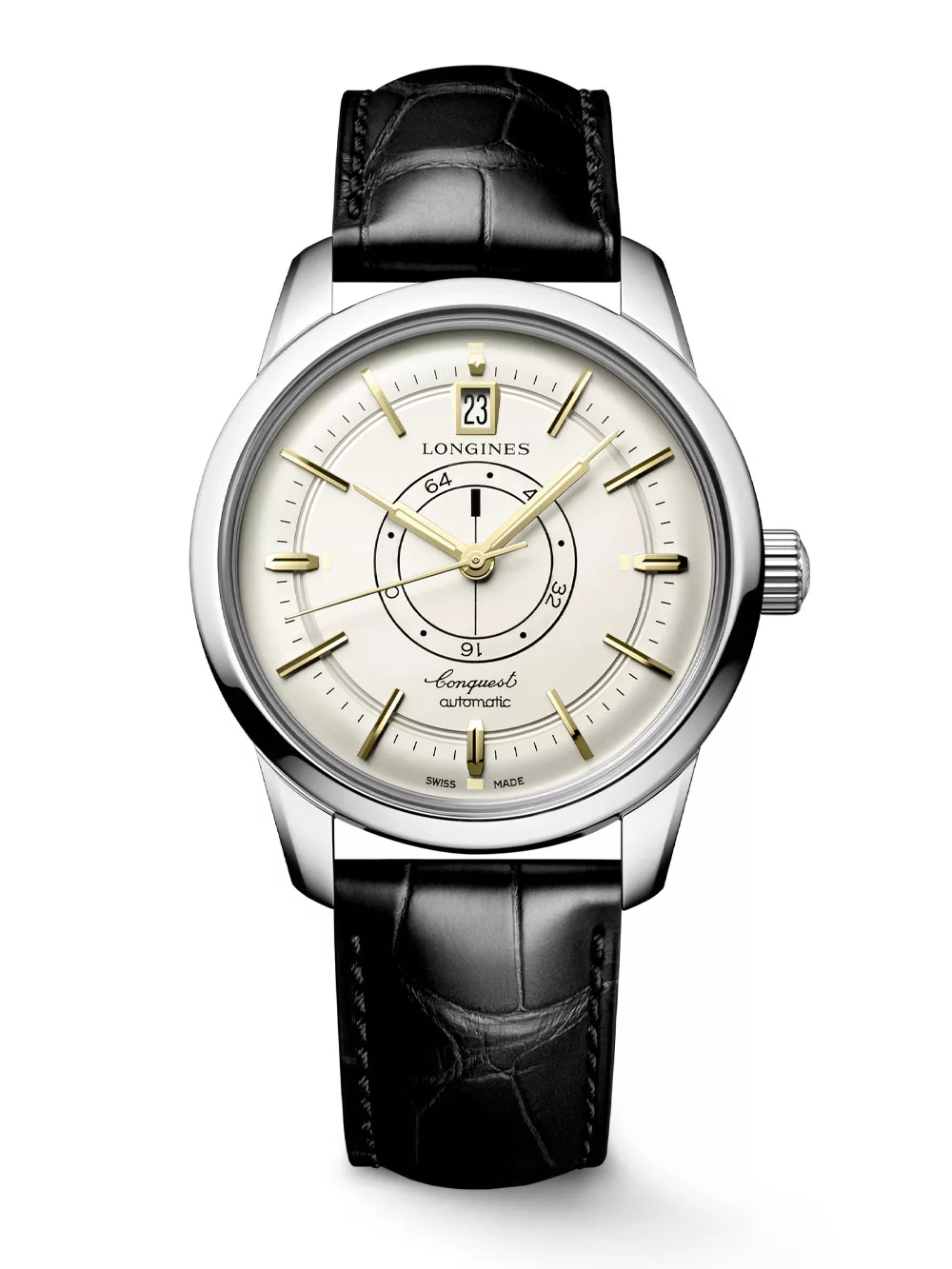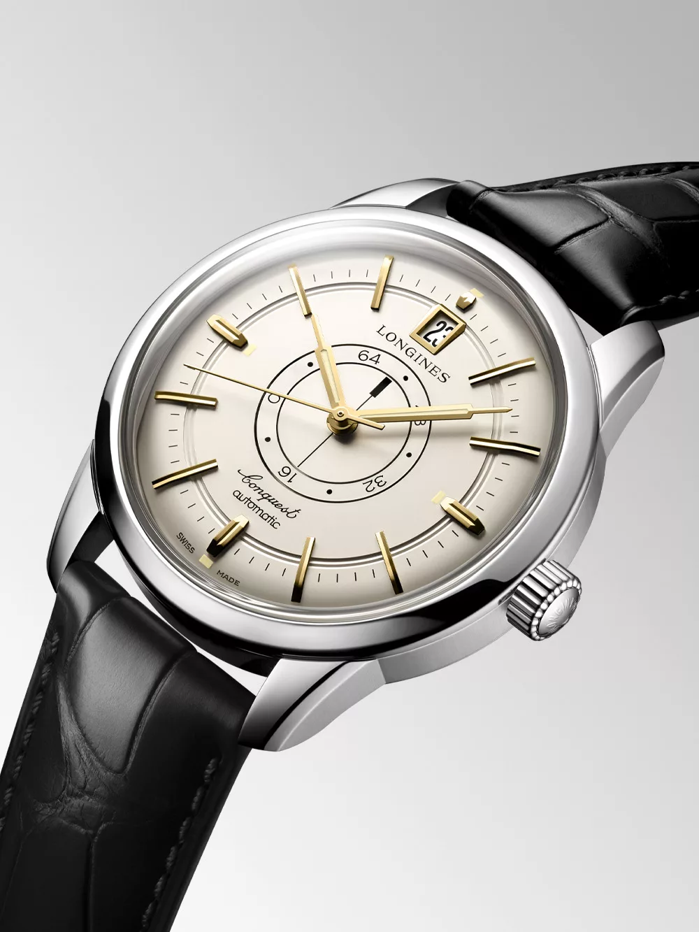 In 1954, the Conquest became Longines’ first trademarked line. Five years later, the collection embraced audacious innovation with a model featuring a revolutionary central power reserve display. Two rotating discs, nestled in the heart of the dial, showcasing a mesmerizing ballet of power depletion. This new model isn’t simply a re-issue, but rather a resurrection; and it resurrects the 1959 classic with a power reserve indicator displayed uniquely in rotating discs at the dial’s center. Longines’ decision to resurrect this vintage gem showcases that, indeed, you can’t keep a good watch down.Â