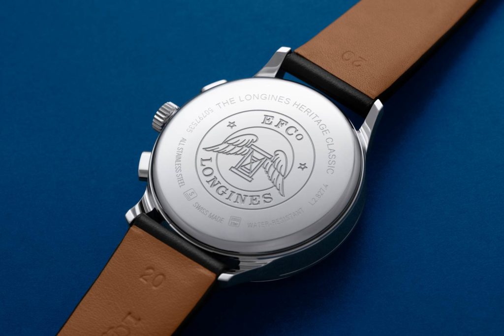 The back of the watch features the Longines winged hourglass logo with the words ‘EFCo Longines’ engraved around the outside. This stands for Ernest Francillon & co, Ernest was the nephew of the brand’s founder, Auguste Agassiz, who took over in 1852 when Auguste fell ill.