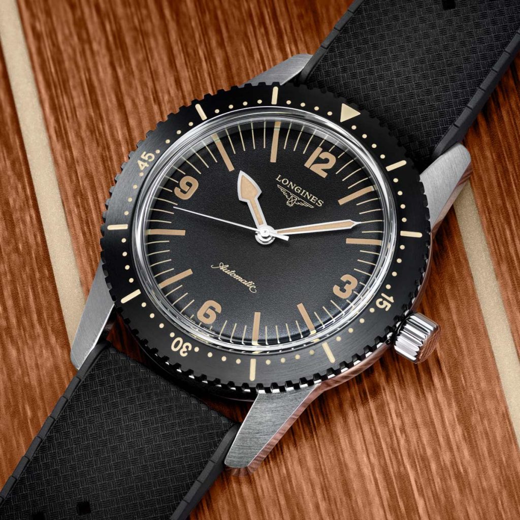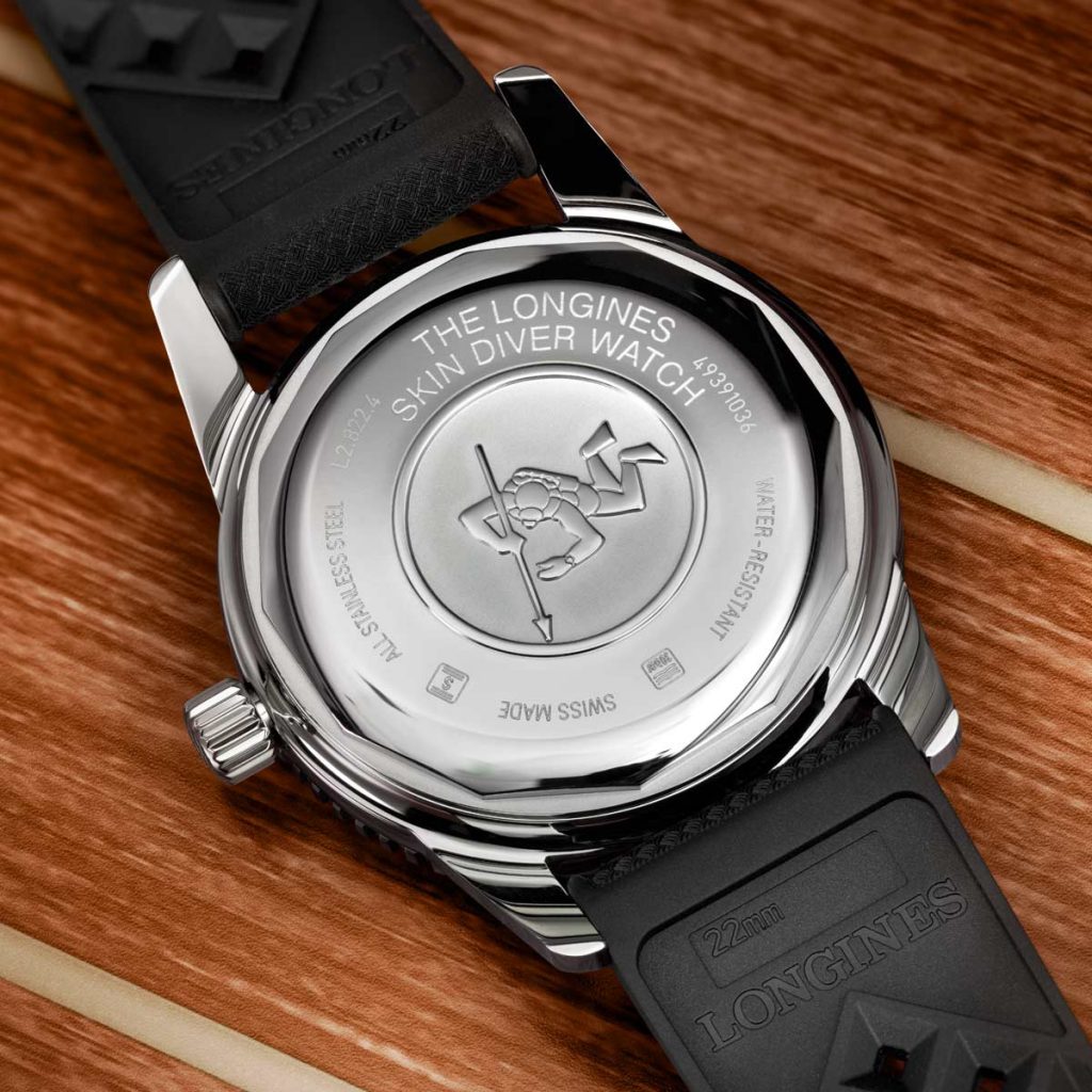 While everything we looked at till now has some sort of vintage inspiration, the powerhouse behind this watch is a rather modern and technical movement. The calibre L888.2 is an automatic 21 jewel movement manufactured by ETA, but exclusively for Longines. It beats at a rather unusual rate of 25,200 bph and offers a healthy power reserve of around 64 hours. While we are certain that the movement would be decently decorated, Longines has deliberately chosen to keep things hidden under a closed case- back with deeply embossed motif illustrating a diver.