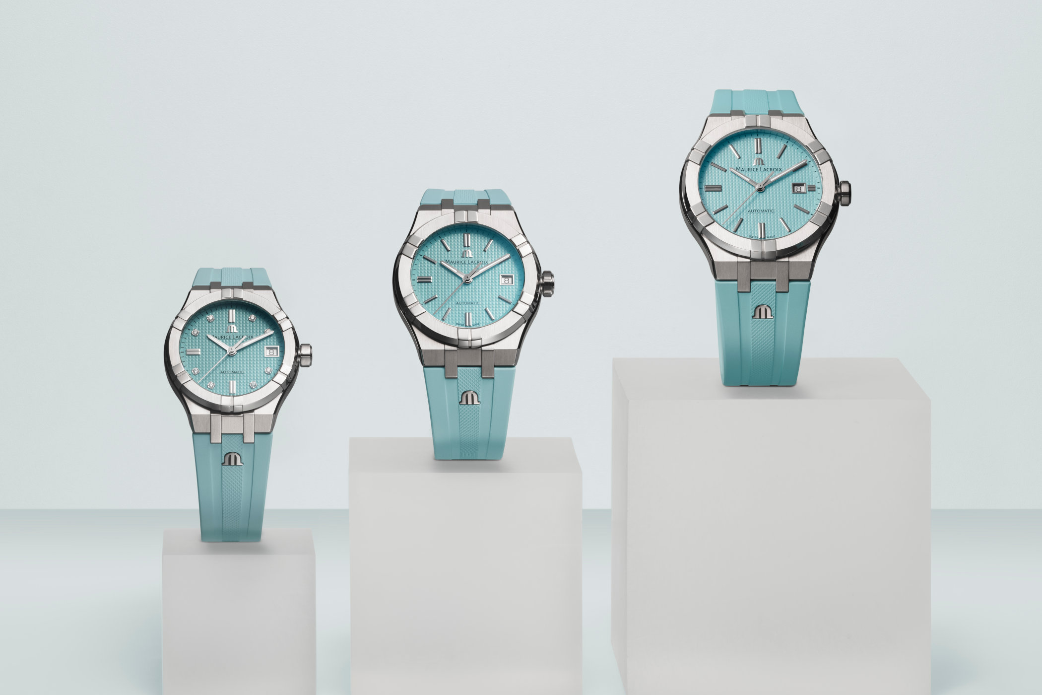 Limited to only 888 pieces each, the 39mm and 42mm Aikon Automatic Summer Edition references are priced at EUR 2,550, while the smaller 35mm variant with diamond-set indices is priced at EUR 2,600, including taxes.
